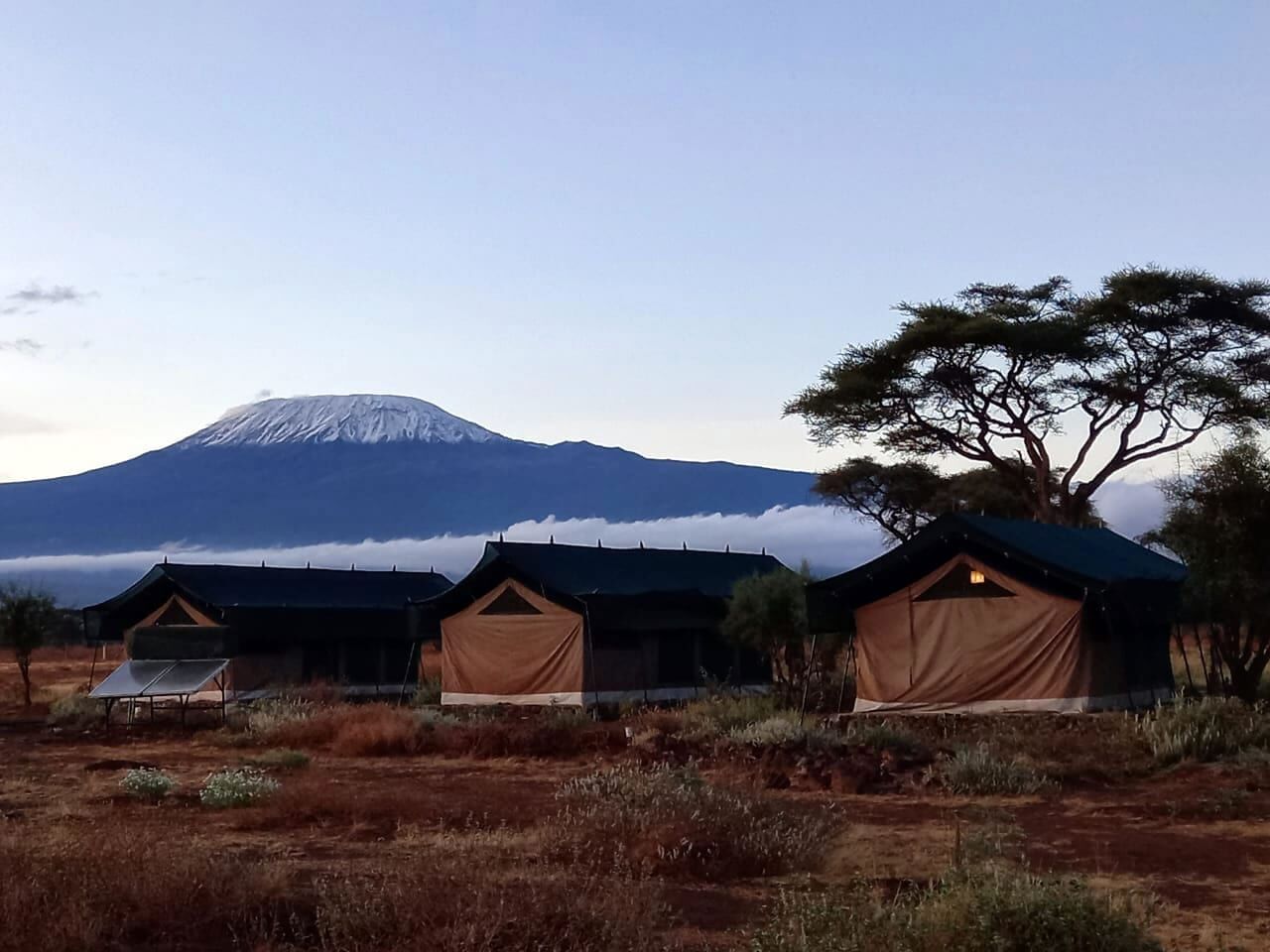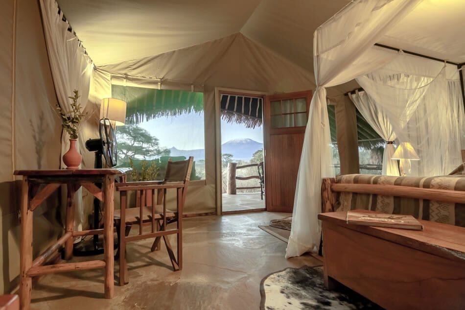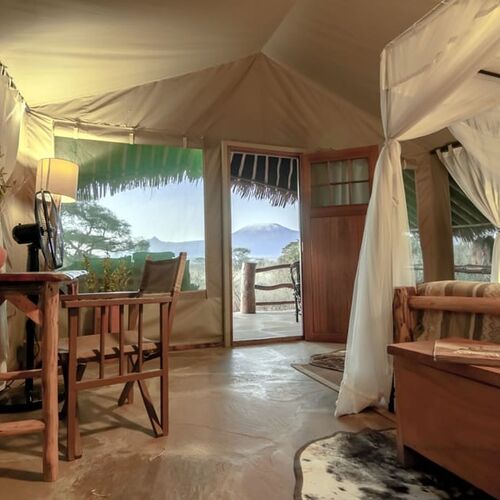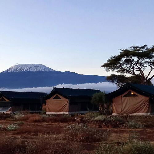Kibo Safari Camp er en luksuriøs teltlejr i Amboseli National Park i Kenya med den smukkeste udsigt til bjerget Kilimanjaro, det højeste bjerg i Afrika. Campen er en hyggelig 4-stjernet teltlejr med ægte safari vibes. Lejren ligger kun 5 minutter væk fra indgangen til Amboseli Park, hvor dusinvis af elefanter og andre spændende dyr venter på dig. Stedet giver en ekstraordinær oplevelse, hvor du kan stå op til synet af Kilimanjaro og blive forkælet af et venligt personale. Om natten er der mulighed for at kigge på utallige af stjerner på himlen og høre de vilde dyr i det fjerne - en oplevelse man sent glemmer.