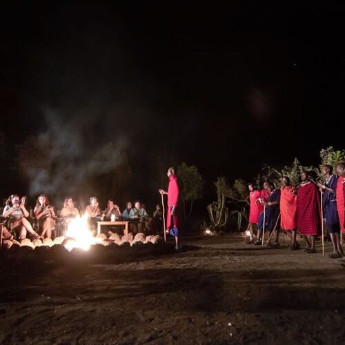 Om aftenen er der underholdning med kulturelle og traditionelle danse omkring bålet. Her vil man kunne få indsigt i den gamle kultur, og med rig mulighed for at deltage i enten dans eller højdespringskonkurrence.