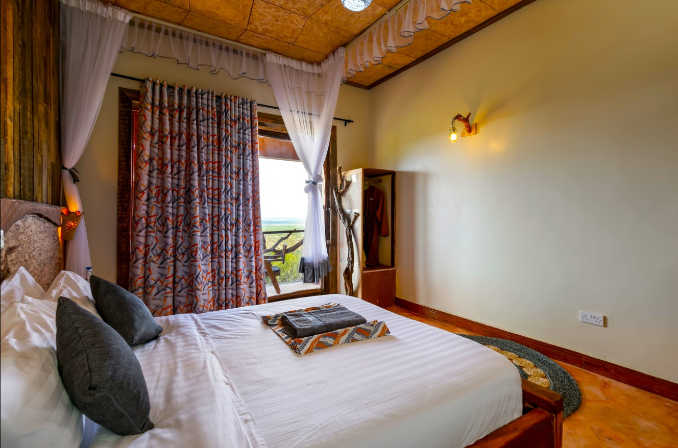 Der er 12 hyggelige, stemningsfuldte værelser, som er bygget op i klassisk afrikansk safaristil. Der er overvejende anvendt naturmaterialer. Alle værelser har bad, toilet, en veranda og der står nogle flasker med gratis drikkevand på værelset. Der er myggenet i hvert værelse.