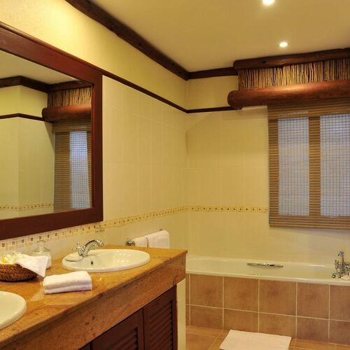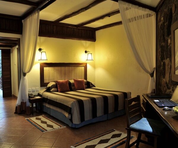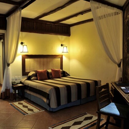 Her findes 56 værelser inkl. enkelte familierum og suiter. De er alle smagfuldt indrettet, har privat veranda og et luksusbetonet toilet med bad. Fra restauranten og baren er der udsigt over vandhullet, mens den frodige have har en dejlig swimmingpool med omkringliggende soldæk. Lodgen rummer også et lille konferencecenter og massagefaciliteter.
