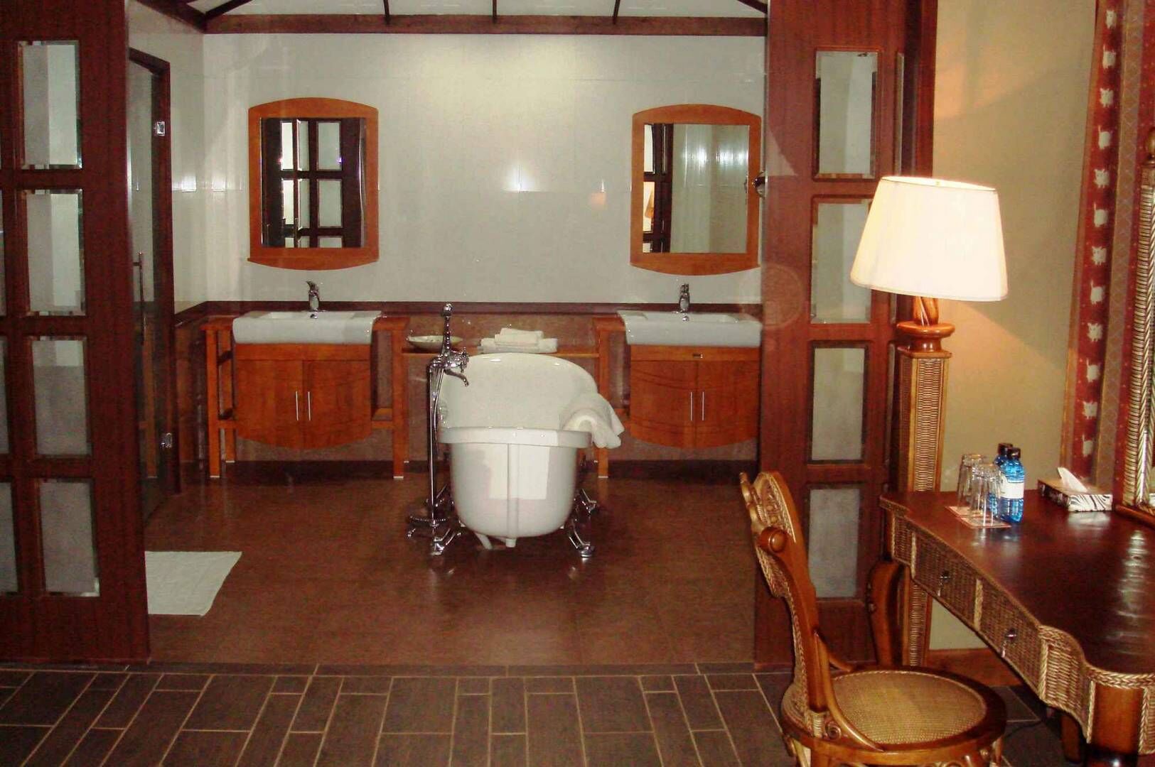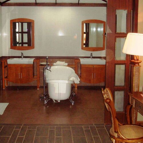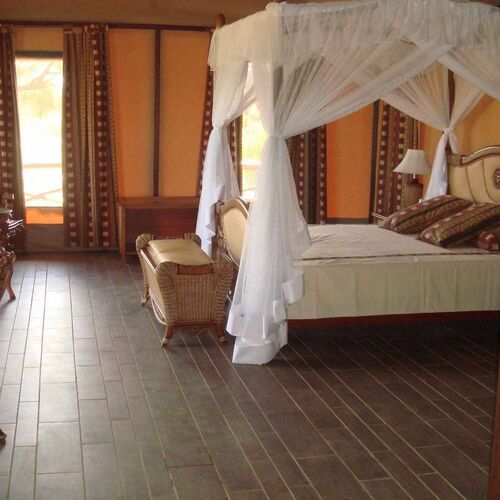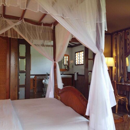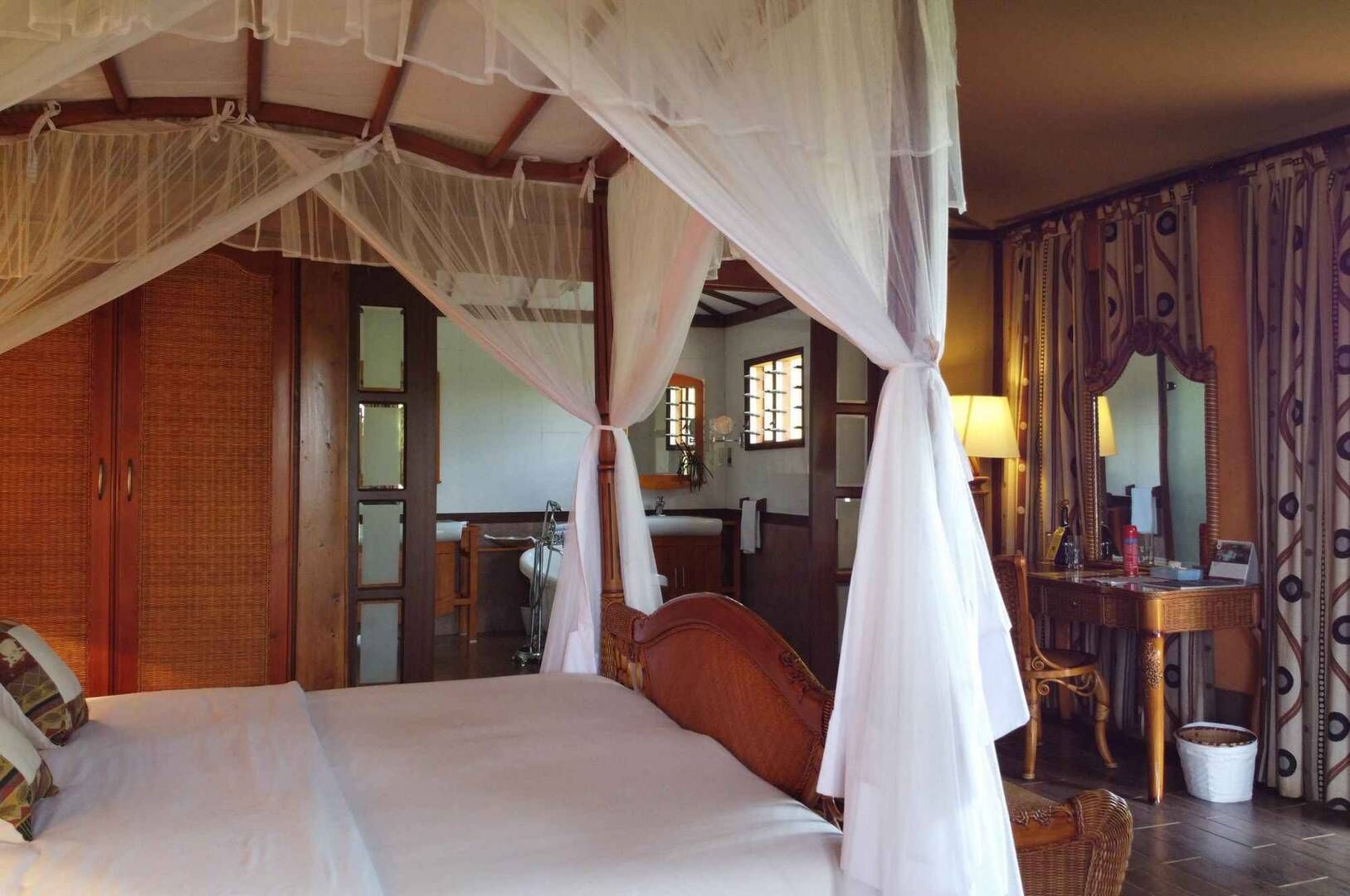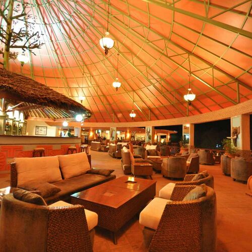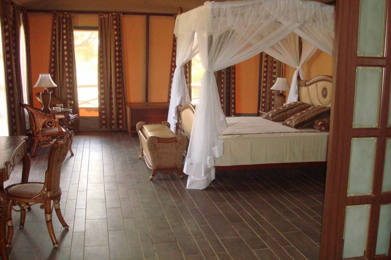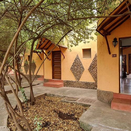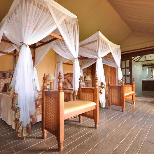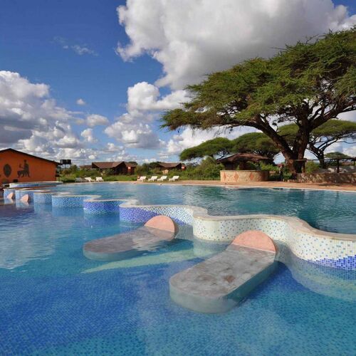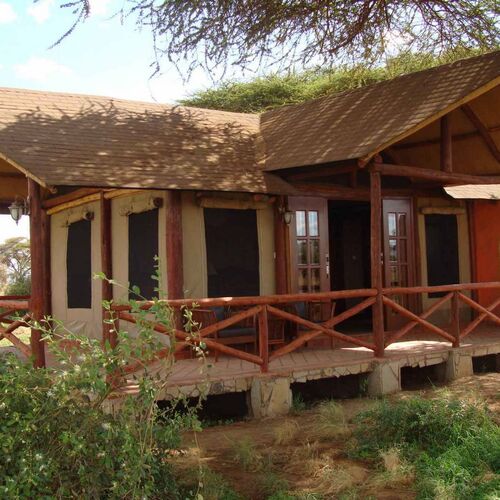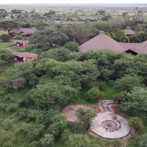 Lodge-værelserne tilbyder en mere traditionel indendørs indkvartering med samme høje komfortstandard. Alle enheder vender mod Mount Kilimanjaro og byder på uforstyrret udsigt over det omkringliggende landskab og nærliggende vandhuller, hvor dyrene samles. Indretningen er inspireret af den klassiske afrikanske safariæstetik og skaber en rolig, naturnær stemning – ideel til afslapning efter dagens eventyr i bushen.