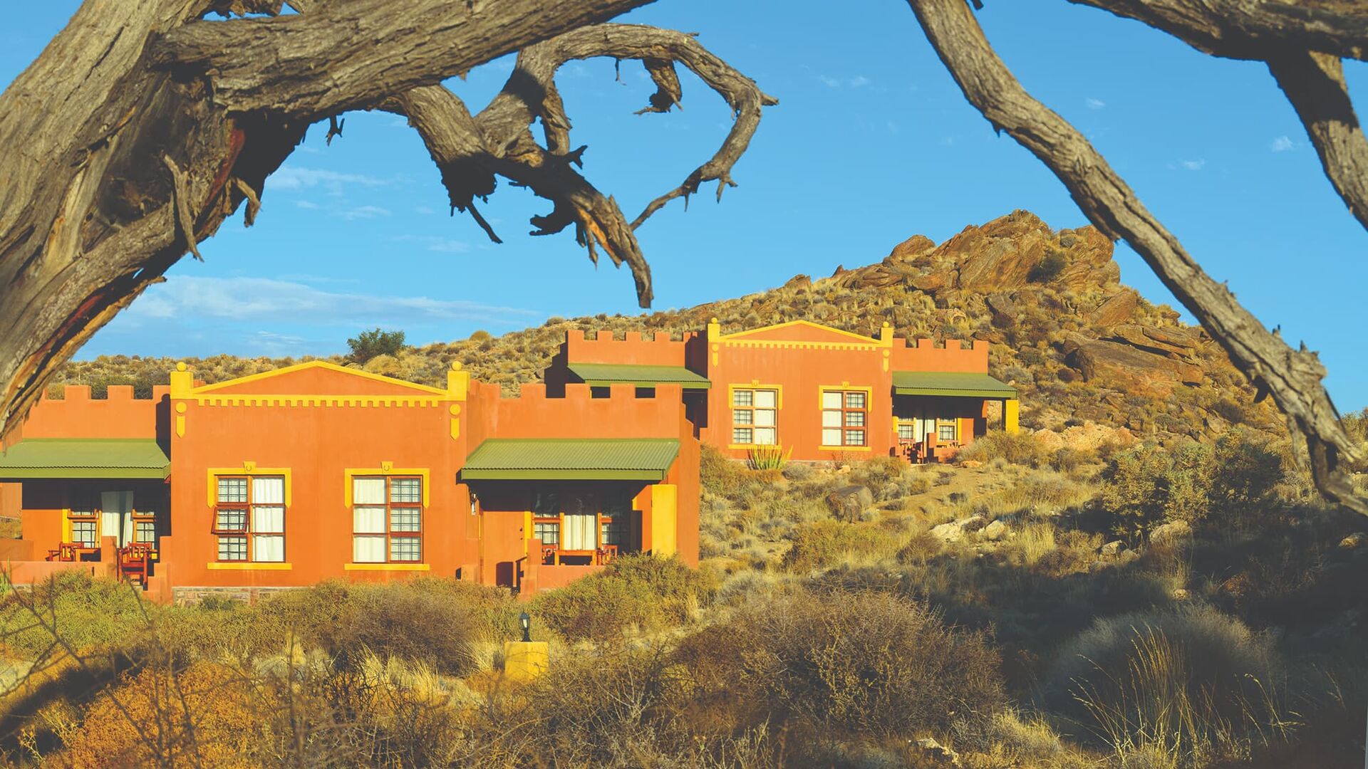Klein Aus Vista er beliggende øst for Aus og er omgivet af granit-gnejsbakker med betagende udsigt over landskabet. Området markerer begyndelsen på Namib-ørkenen, hvor den smelter sammen med gyldne græssletter, og det er et sted, hvor vilde heste strejfer frit, og mennesker engang samledes med drømme om diamanter. Stedet er ideelt som base for at udforske det sydvestlige Namibia eller som et perfekt stop på vejen mellem kløften og de røde klitter i Sossusvlei.