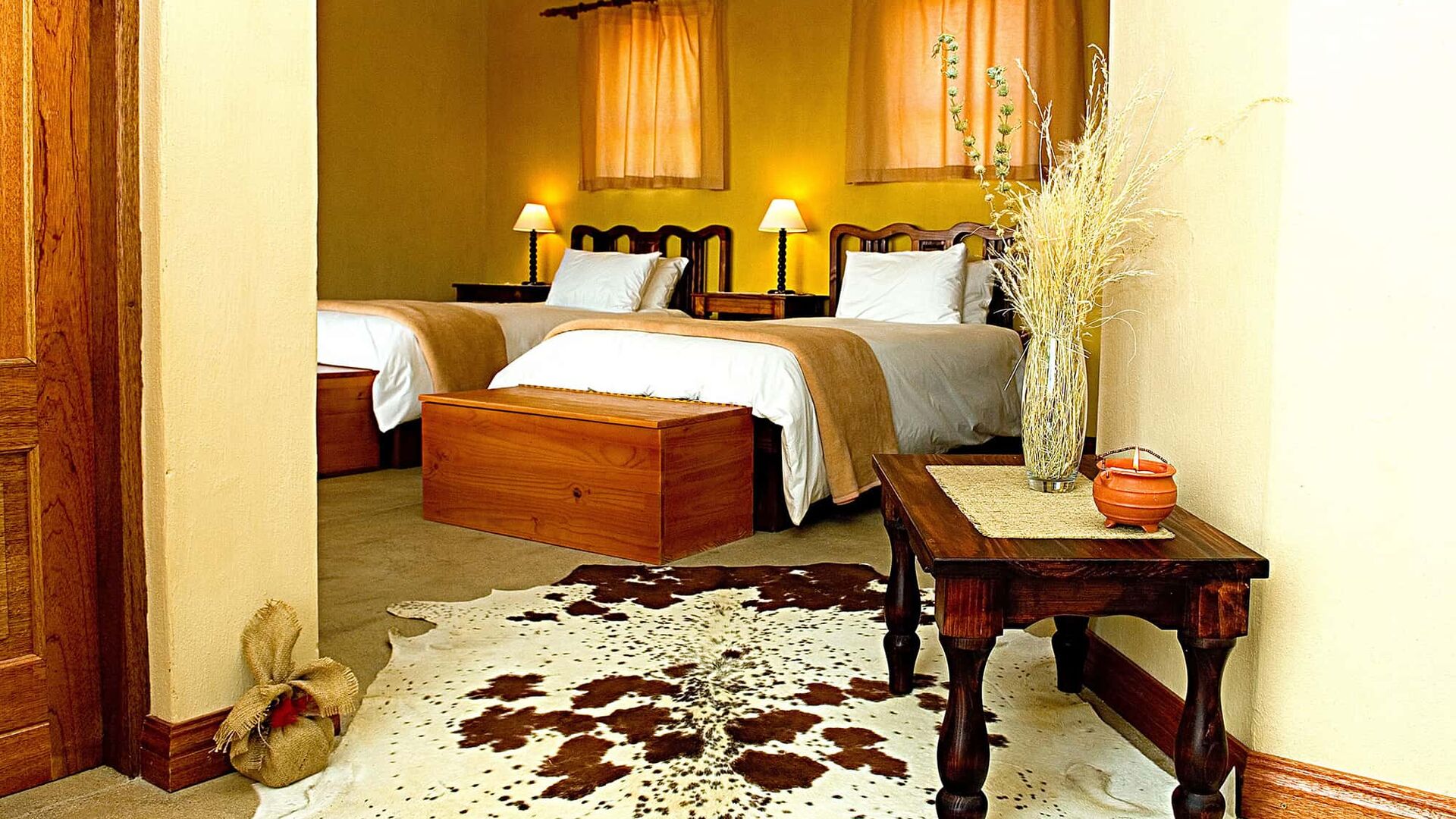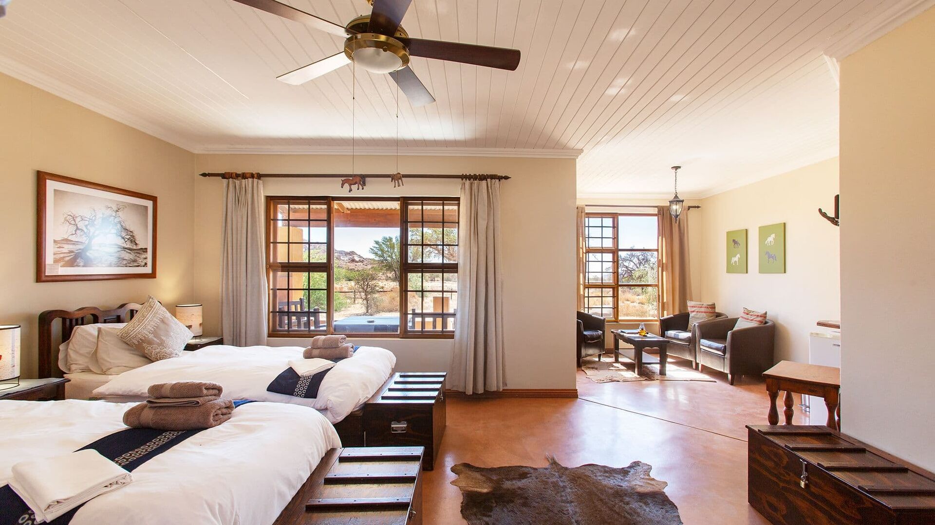 For par er der privatliv og plads i twin-værelserne som en perfekt løsning. Disse værelser har to enkeltsenge og en-suite badeværelser samt en komfortabel opholdsstue og en indbydende veranda. De er indrettet i en stil, der kombinerer æstetik med funktionalitet og giver gæsterne mulighed for at slappe af og nyde deres ophold i Klein Aus Vista i deres eget tempo.