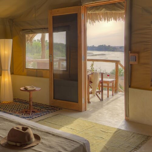 Teltværelserne har store, åbne vinduer, der giver en fantastisk udsigt over den omkringliggende savanne og floden, hvilket skaber en tæt forbindelse til naturen. Der er en privat terrasse, hvor man kan slappe af og nyde den storslåede udsigt. De er udstyret med komfortable senge, luksuriøse sengetøj, varme og kolde bruser, samt moderne badeværelsesfaciliteter.