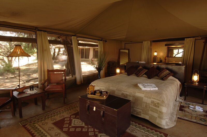 Campen er en fast tented camp med kun 20 store og rummelige luksuriøse telte, som er placeret under skyggefulde acacietræer helt ned til floden. Alle telte er meget velindrettede med gode senge, og med møbler og tekstiler, som minder om gamle dages kolonitid, og til hvert telt hører der også et godt badeværelse med toilet, bruser og håndvask samt en dejlig veranda, hvor man kan sidde og nyde den skønne natur.