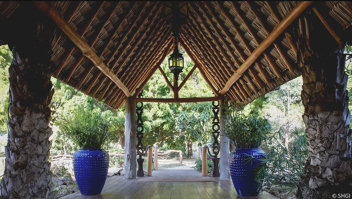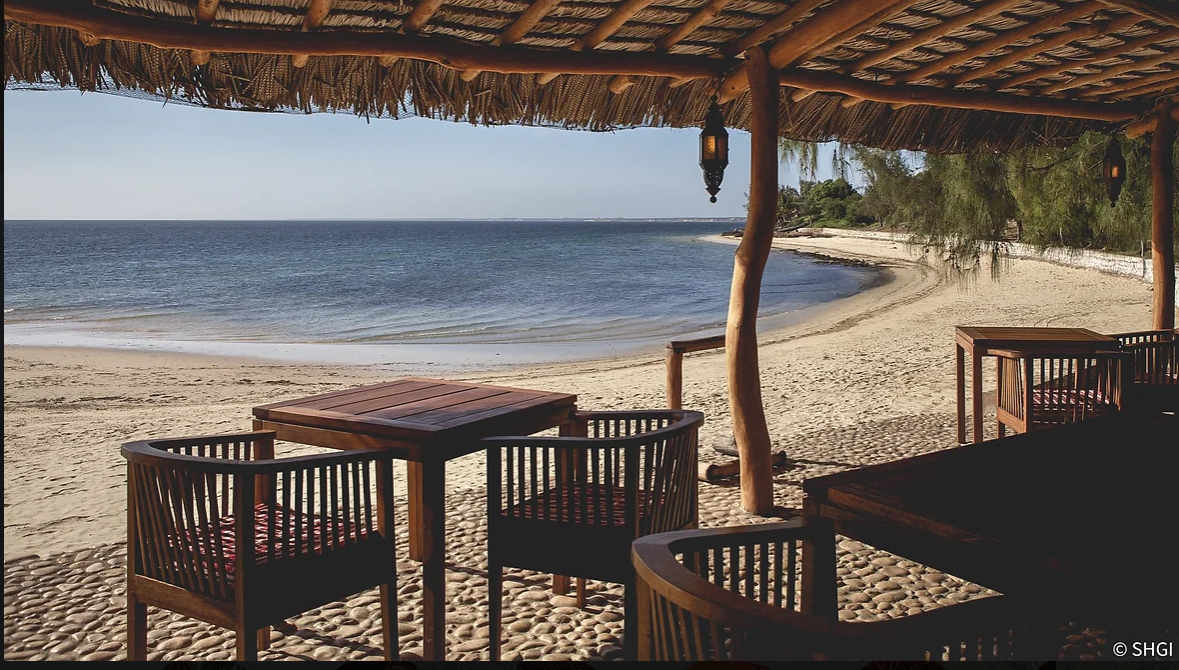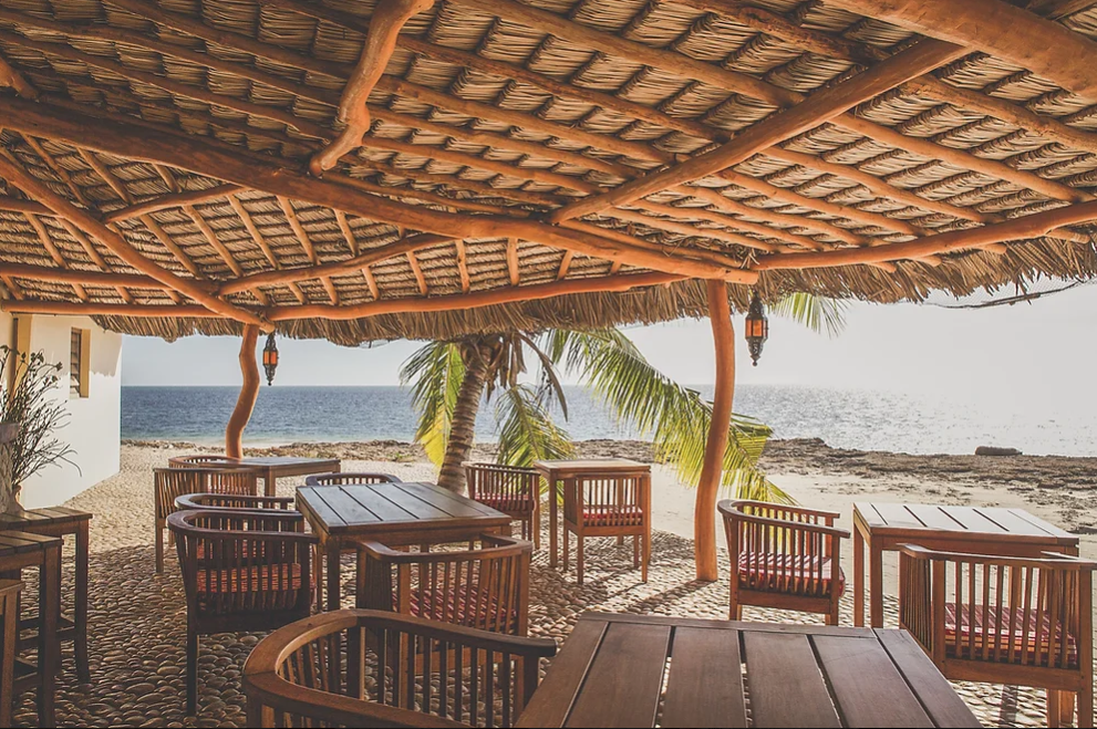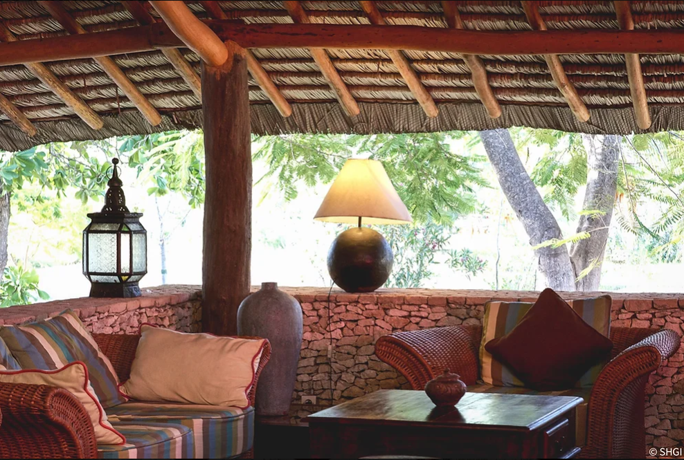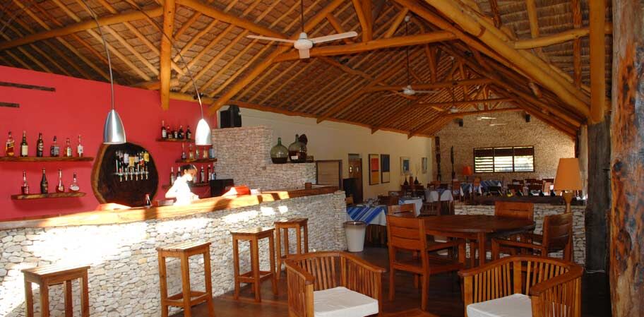 Hovedbygningen, hvis tag er konstrueret med et dobbelt lag vondry (et traditionelt fiber fra Madagaskar) og metal imellem for at sikre vandtæthed, huser receptionen, lounges, hovedbaren, restauranten og dens terrasse. En stor trappe fører ned til stranden.