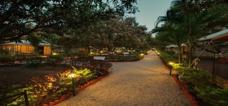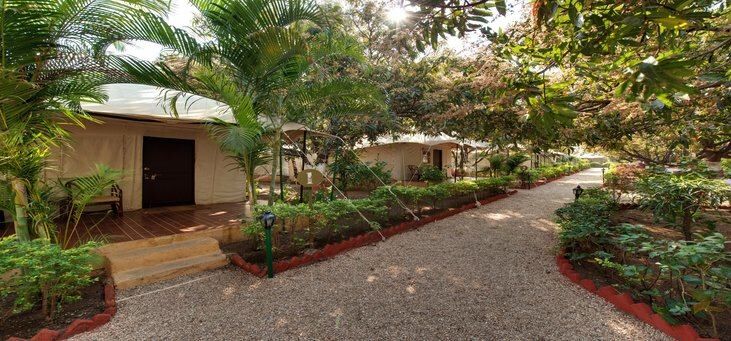 The Lion Safari Camp er beliggende ved Gir National Park i en privat mangoplantage med udsigt til Hiran River. På beliggenheden ser man i øjeblikket omkring 900 mangotræer, selvom kun 2 % af det samlede areal er beplantet. Dette skyldes, at man ønsker at bibeholde områdets naturlige balance.