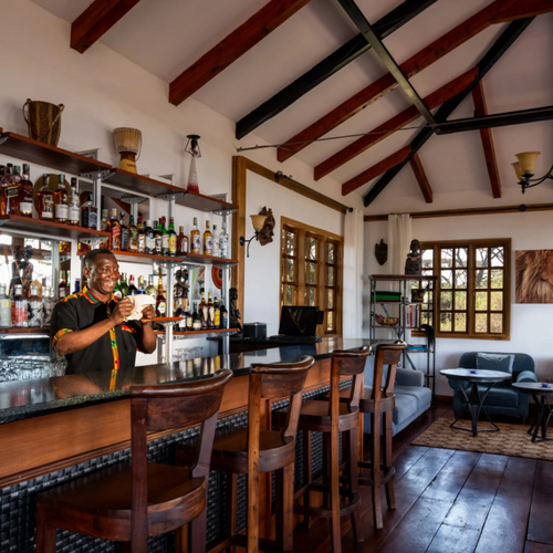 Gæsterne på lodgen kan nyde en række faciliteter, herunder en bar i fælles opholdsstue.
