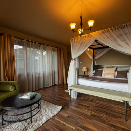Gæsterne kan forkæle sig med betagende udsigt over Ngorongoro-krateret fra den private suite og nyde de elegante indvendige funktioner: en komfortabel king-size seng, en hyggelig opholdsstue og et overdådigt ensuite badeværelse.