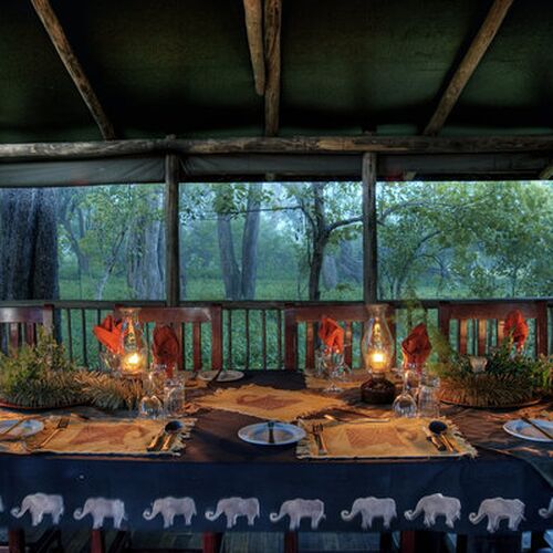 Måltiderne indtages i den intime og hyggelige stråtækte lounge med udsigt til lagunen. Campen har en lille butik og og pool område.