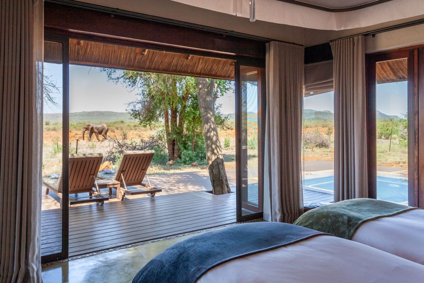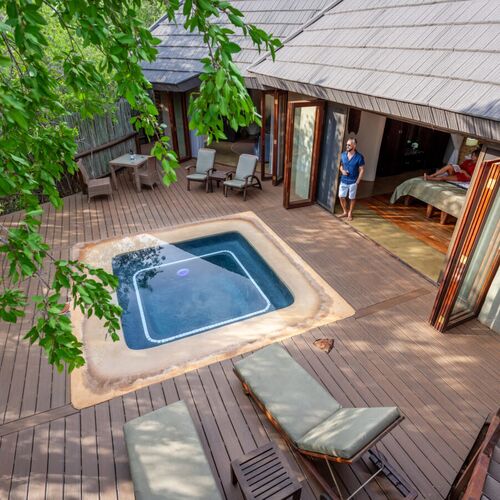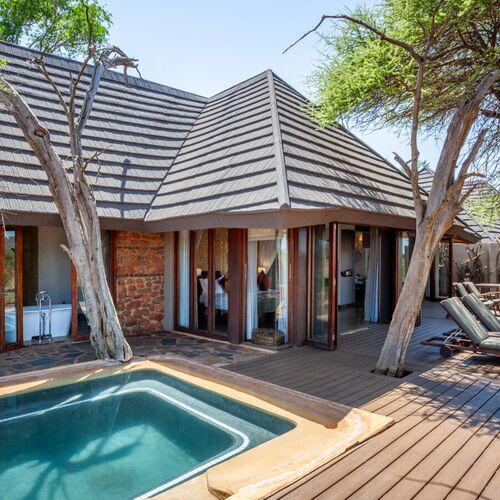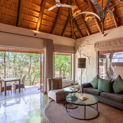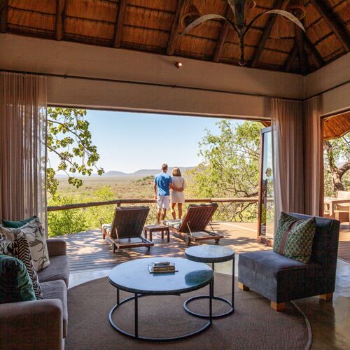 Suiterne er elegant indrettede med store badeværelser, både indendørs og udendørs brusere, og giver en enestående udsigt over det omkringliggende vildnis. "Little Madikwe"-villaen er ideel til familier eller små grupper og inkluderer privat safarikøretøj med guide, personlig kok og villaassistent.