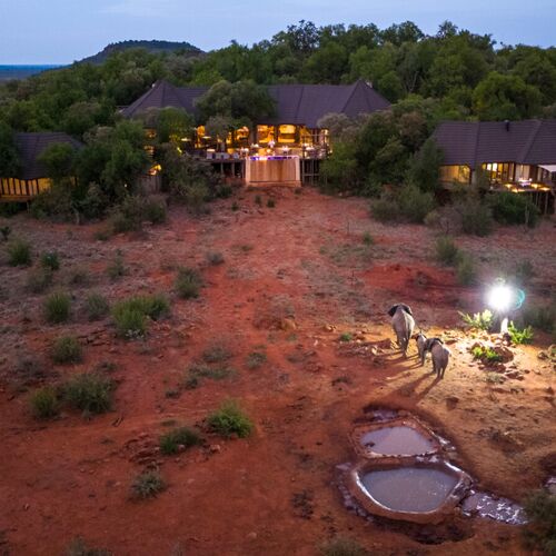 Gæsterne kan nyde faciliteter som en fælles lounge, bar, vinkælder, tv-stue, spisestue og en terrasse med pool med udsigt over et vandhul, hvor dyrelivet ofte samles. Derudover tilbyder lodgen en spa, et fitnesscenter og en shop.