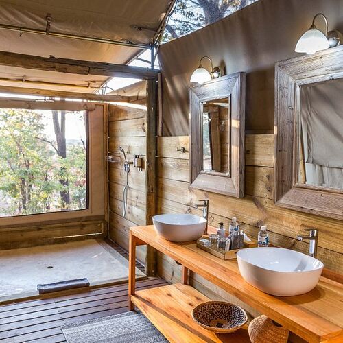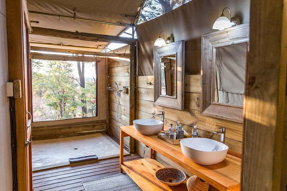 Lodgen er bygget i naturligt lyst træ og består af 10 eksklusive teltvillaer, hver med en privat udsigtsdæk, der tilbyder imponerende udsigt over den uberørte vilde natur.