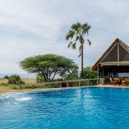 Lodgen tilbyder faciliteter som spisestue, bar, lounge, souvenirbutik og helt igennem fantastisk udendørs swimmingpool. Her kan dagen bearbejdes, nydes og deles med familien eller andre gæster. Herfra er der også en åben udsigt til sletten hvor dyrene går til frit skue.
