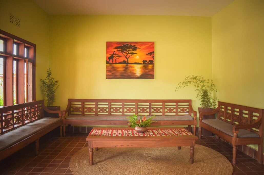 Hytterne ligger i frodige tropiske haver, og en vandresti går rundt om den omfattende økologiske køkkenhave. De veluddannede kokke sætter en ære i at skabe et udvalg af velsmagende, sunde retter, alle af lokale råvarer hentet fra egen have samt nærliggende gårde og plantager.