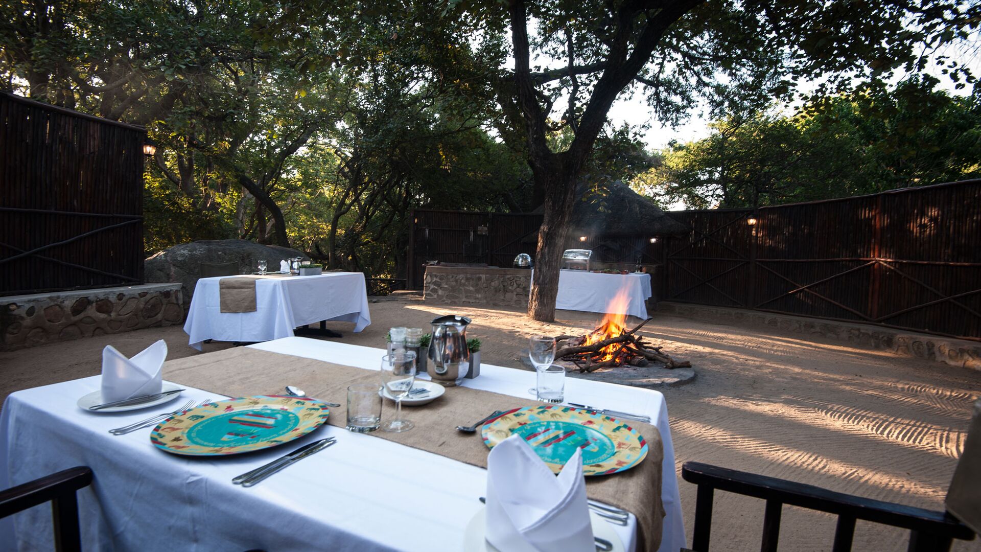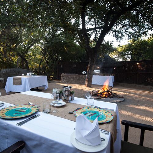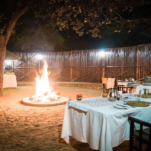 Fra den store terrasse ved hovedbygningen kan man se ned til et vandhul hvor flere dyr kommer for at slukke deres tørst. Campen er ikke indhegnet hvilken giver dyr så som zebraer, aber, bavianer og antiloper mulighed for at komme ind og sige ”Hej”. Området har ikke ”the big 5” og faren der føler med, herfra grunden til at campen ikke er indhegnet. Hyæner og flodheste lever i området men bryder sig ikke om lyset fra campen og kommer derfor ikke på besøg. Der er desværre ikke pool i campen.