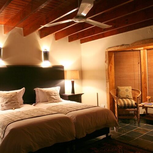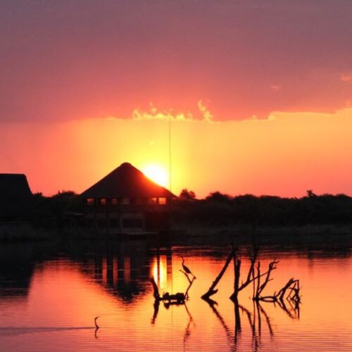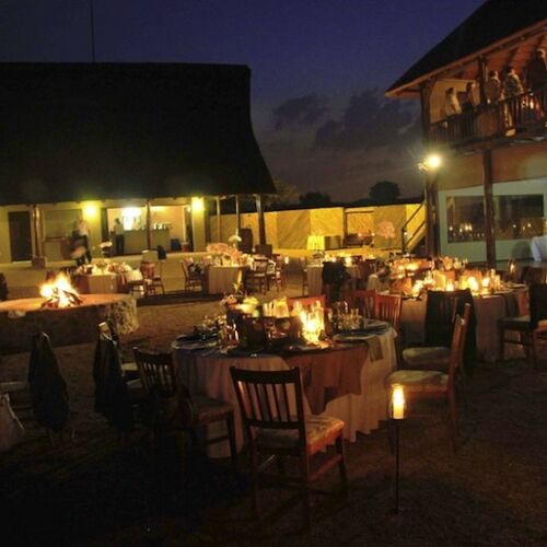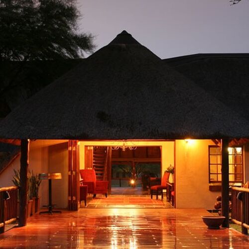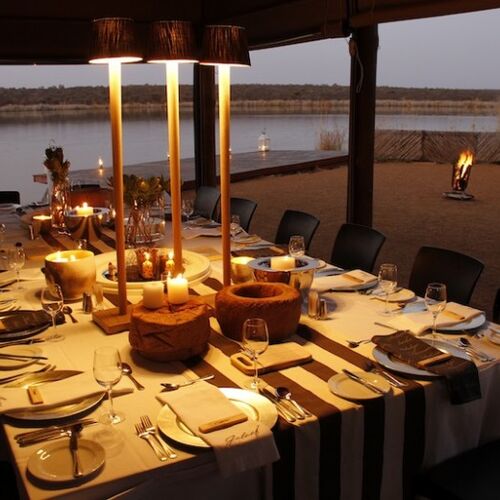 Restauranten er flot placeret med en god udsigt over en sø samt med udsigt over Dinokeng Game Reserve.