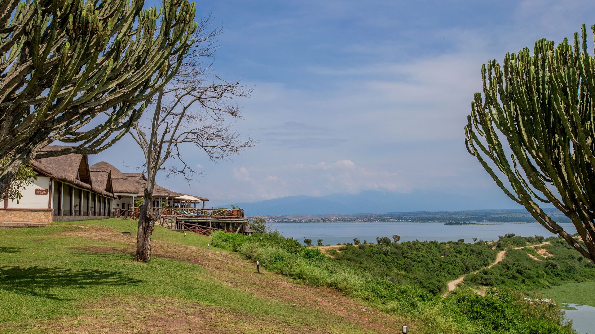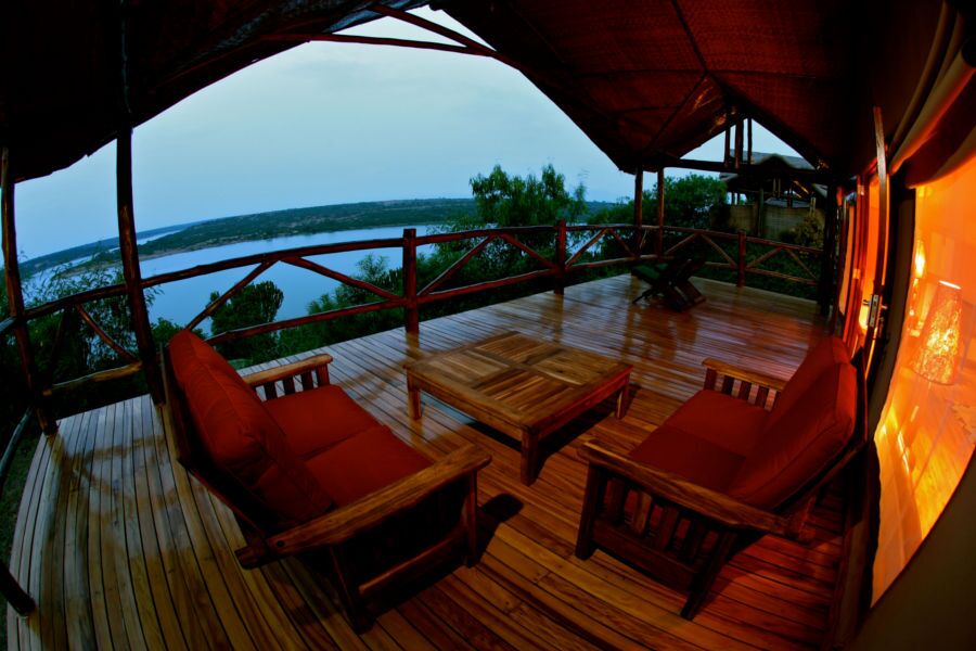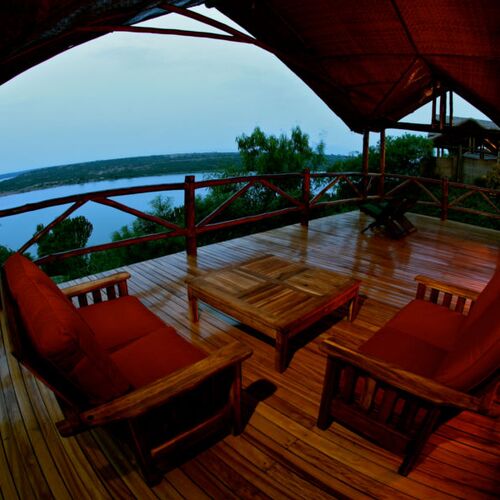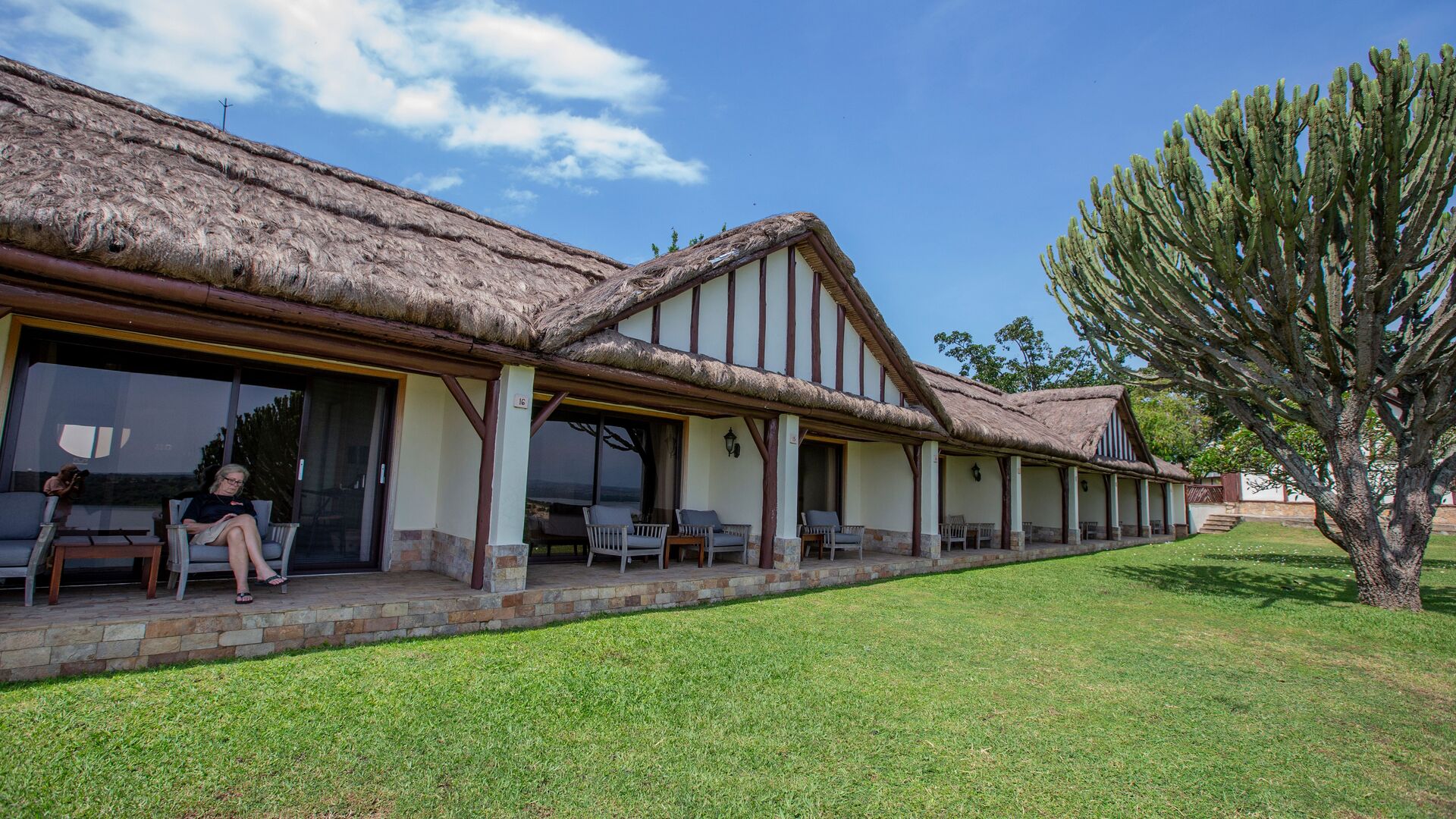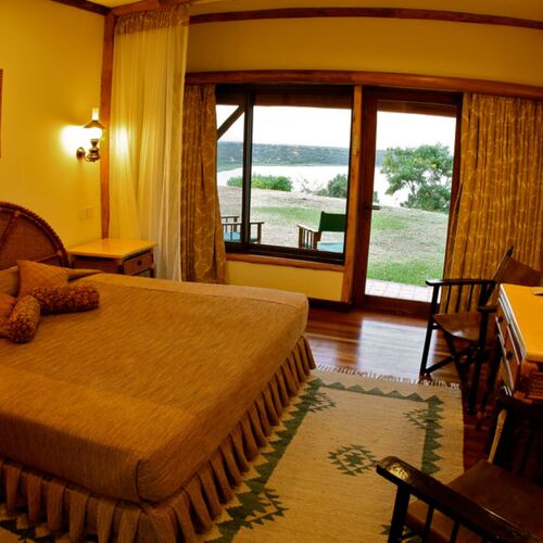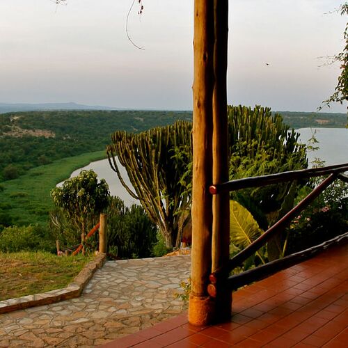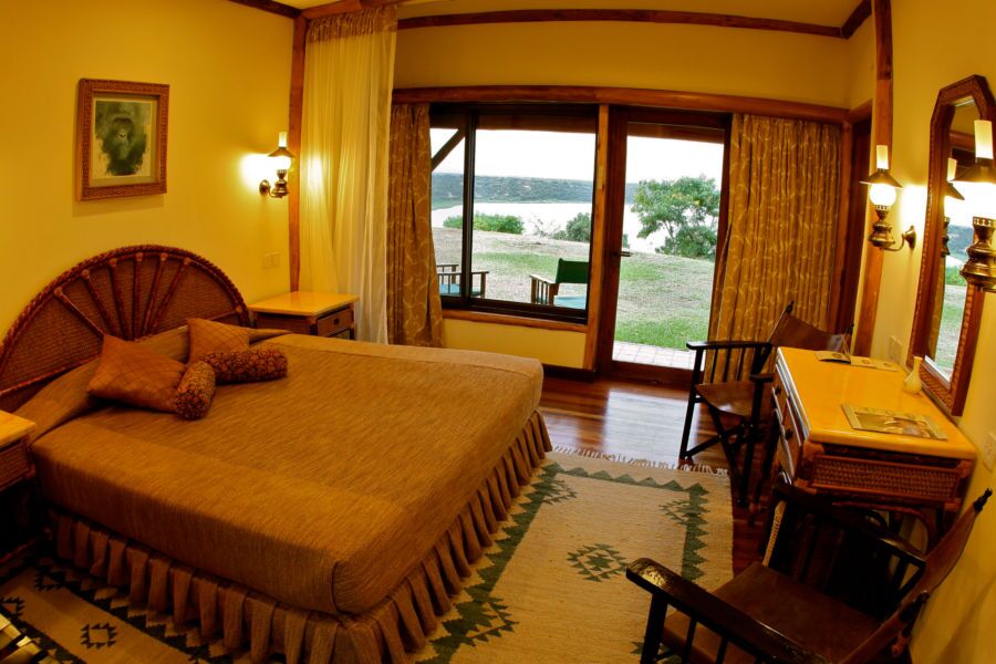 Alle værelser på Mweya Safari Lodge har en betagende udsigt over Kazinga kanalen, hvor det rige fugleliv og de mange flodheste kan observeres. Maden er dejlig og byder på en blanding af continental, indisk og internationale retter.