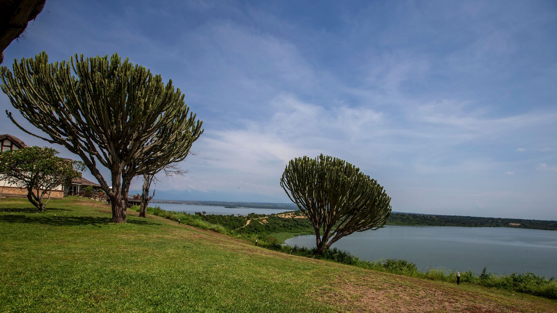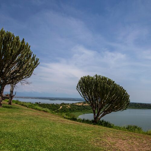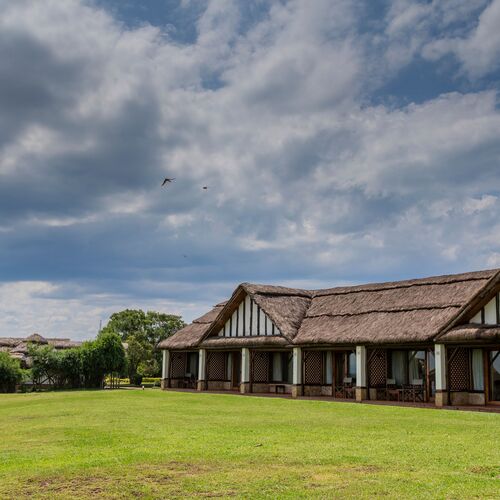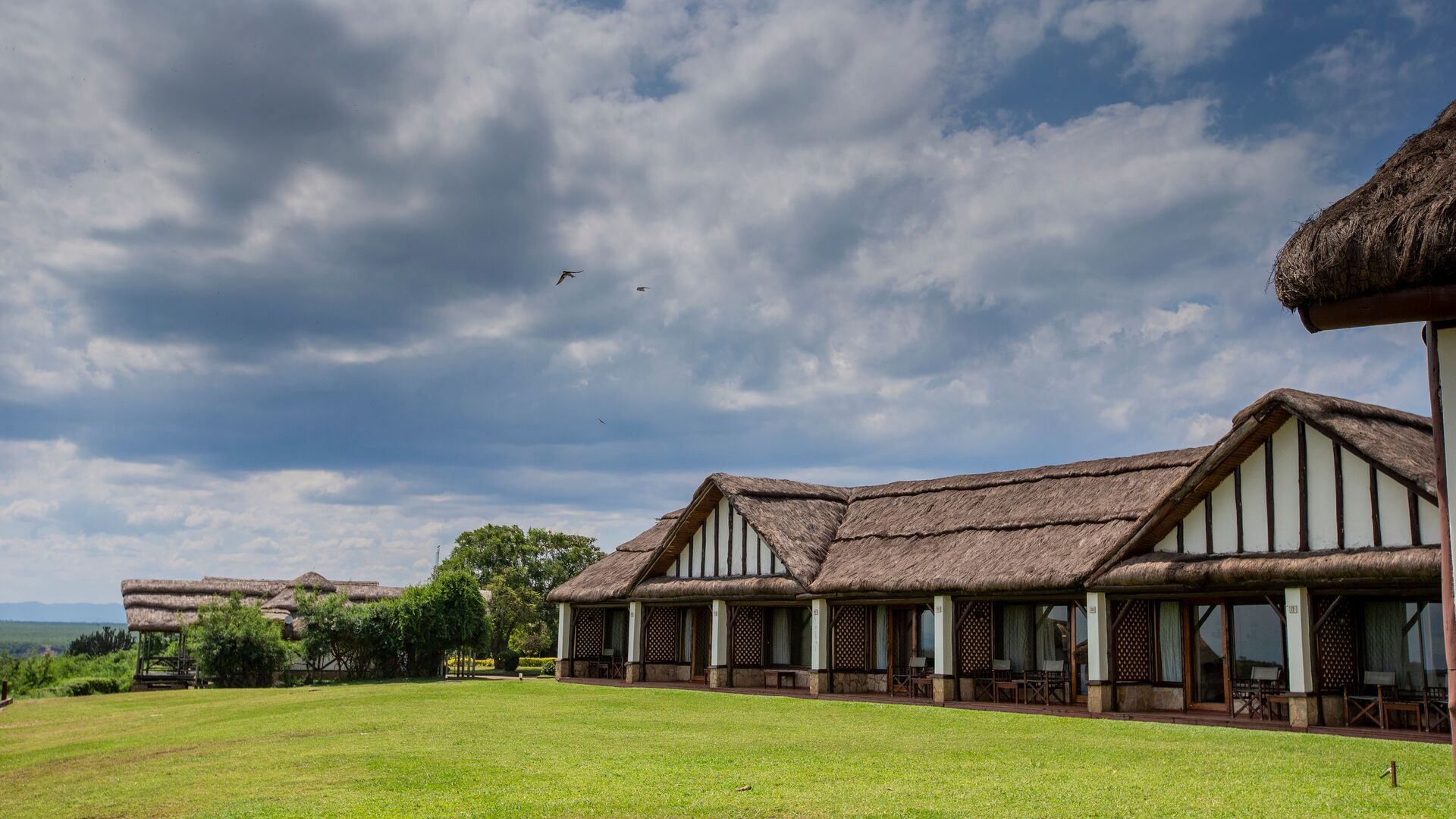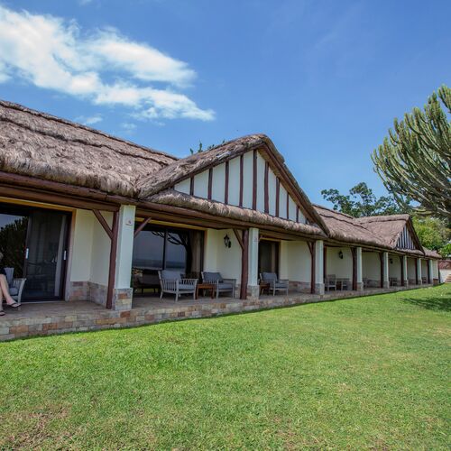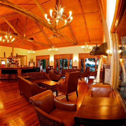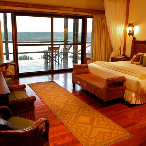 Alle værelser på Mweya Safari Lodge har en betagende udsigt over Kazinga kanalen, hvor det rige fugleliv og de mange flodheste kan observeres. Maden er dejlig og byder på en blanding af continental, indisk og internationale retter.