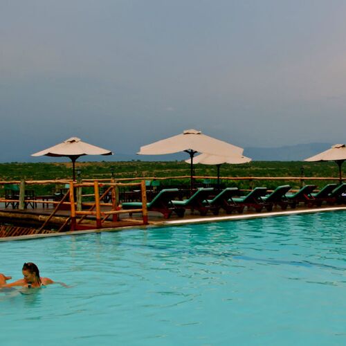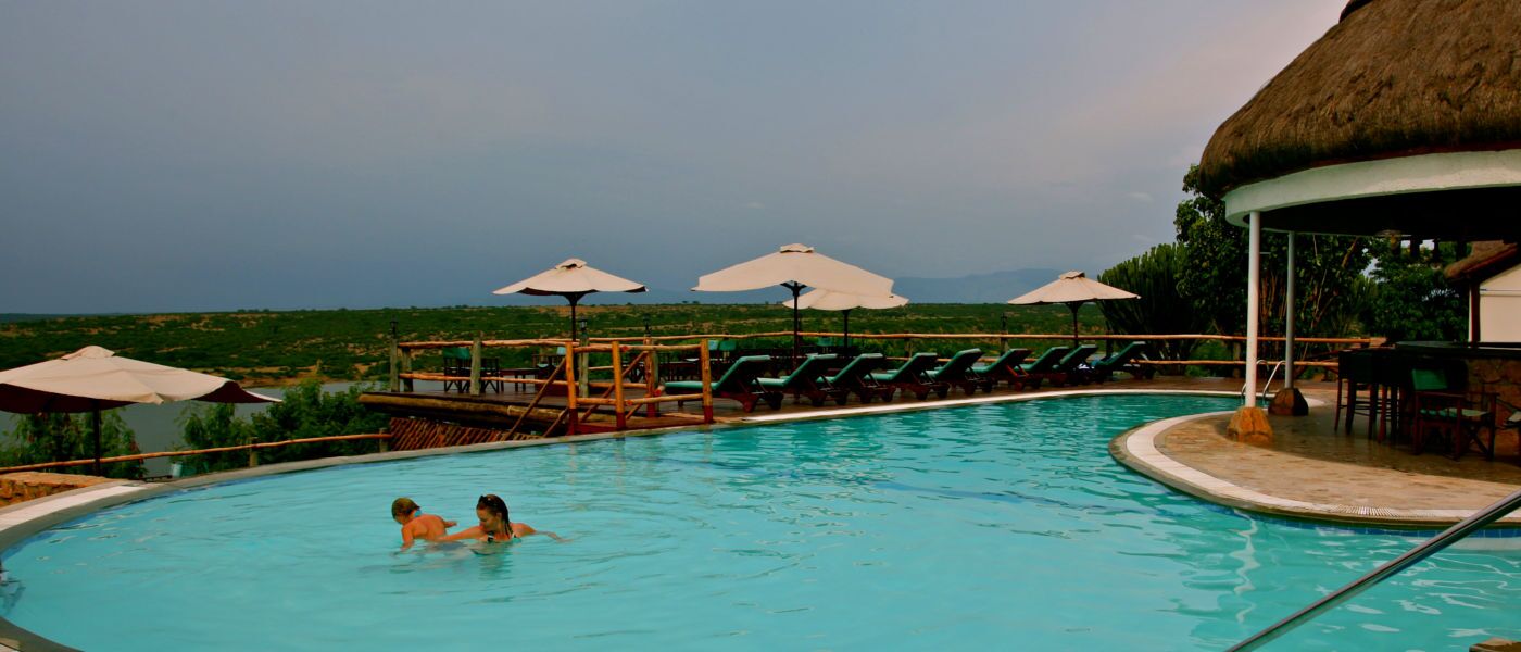 Fra terrassen er der er en dejlig pool, hvorfra du kan ligge og køle ned i varmen. Der er en hyggelig poolbar, som tilbyder friske kolde drikkevarer. Der er panoramisk udsyn udover Kazinga kanalen fra terrassen og poolen.