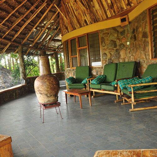 På den ikoniske stengrotte restaurant på Naiberi River Campsite & Resort tilbydes der et stort udvalg af drikkevarer og en spændende menu.