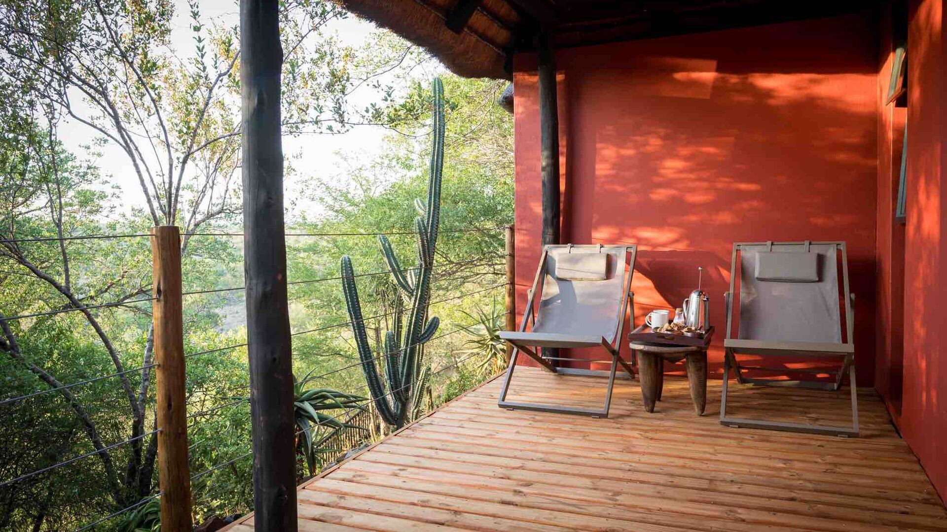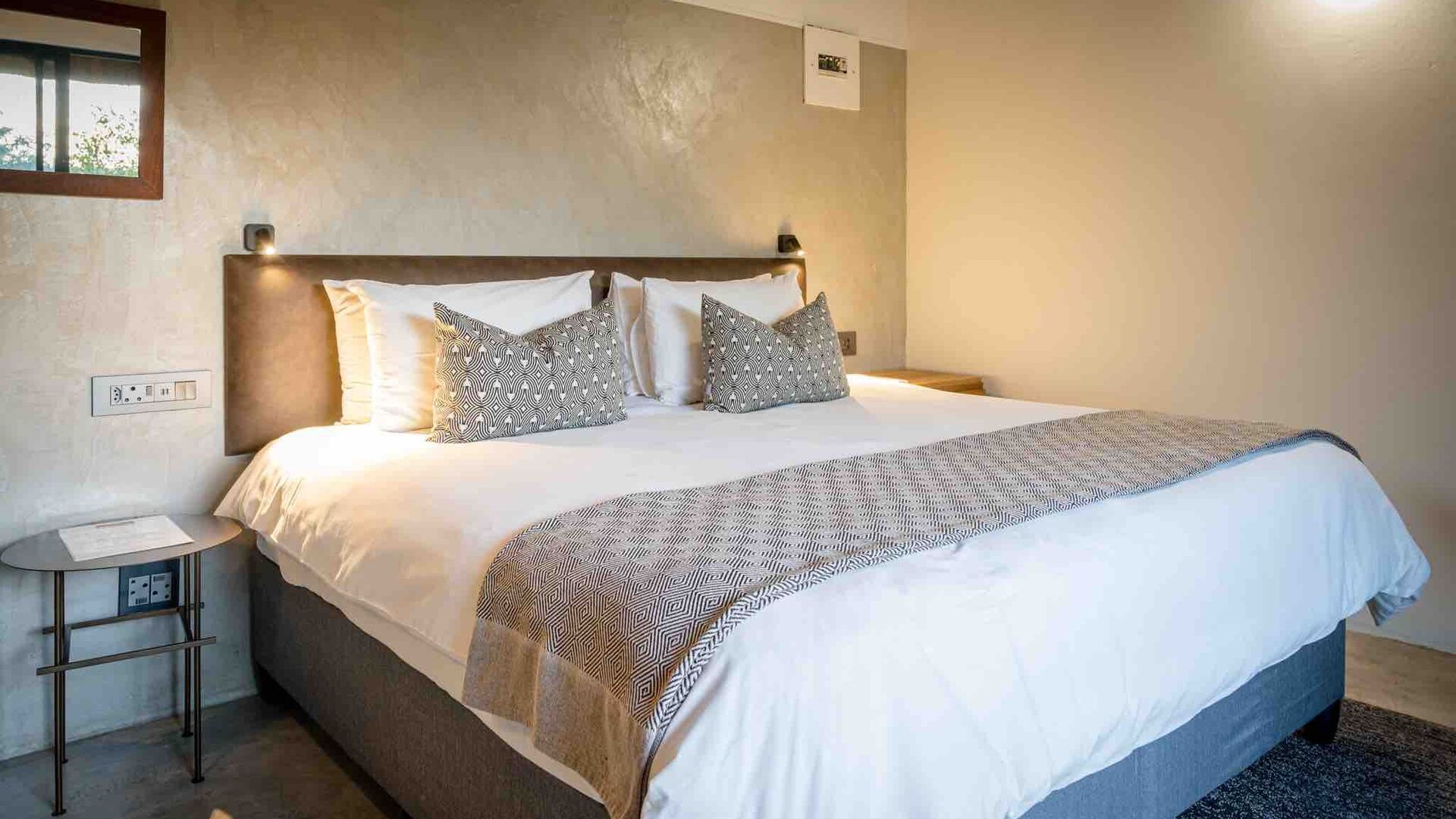 Hver chalet er lys, luftig og smagfuldt indrettet i klassisk safaristil med rustikke detaljer. Alle er udstyret med aircondition, komfortable king size-senge, rummelig opbevaring, moderne badeværelser med eksklusive toiletartikler samt moderne stikkontakter med USB- og USBC-ladere ved sengekanterne.