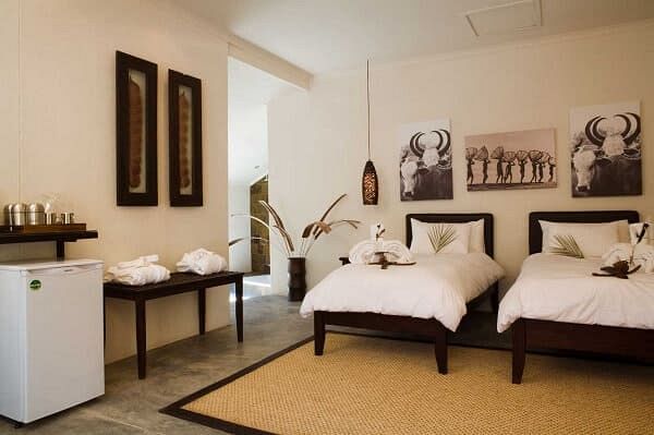 Der er 24 dobbeltværelser tilgængelige med private områder foran værelserne. Bush-chaletsne er rummelige og private. Der er en dobbelt bruser og håndvask, og skydedørene giver adgang til et afslapningsområde foran hytten. Derudover er det også muligt at campere i området.