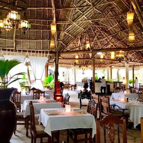 Køkkenet er baseret på friske lokale kvalitetsingredienser, tilberedt på middelhavsmåde med strejf af swahili-køkken i et mix af årstidens retter. Der serveres lokale og internationale specialiteter tilberedt med en passion for fantastisk madoplevelser.