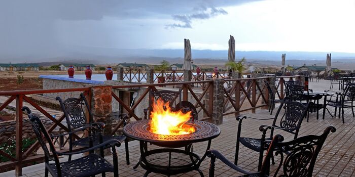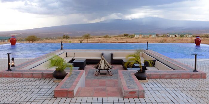 Adgangen til lodgen sker over en dam, og det første indtryk man får her er den store centrale hall med træbænke og udsigt til pejsen, infinity poolen og til Mount Oldeani, som er en del af det verdens berømte Ngorongoro krater, der er beliggende kun 12 km. væk fra lodgen.