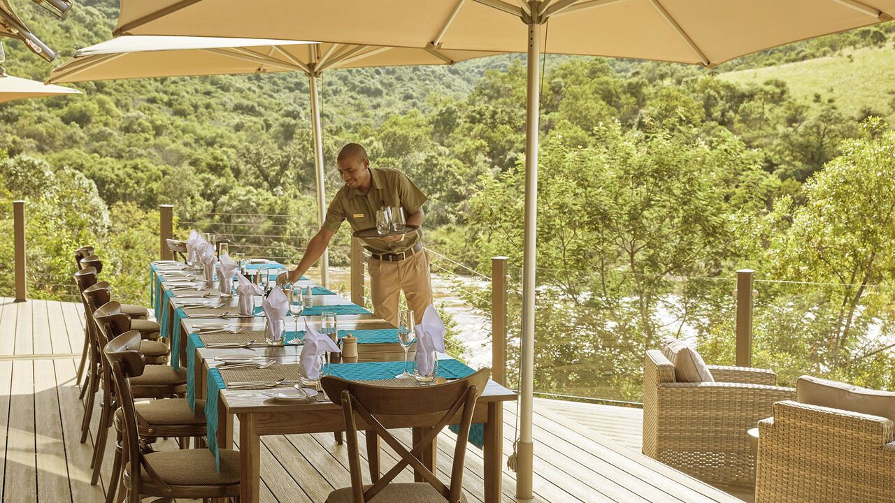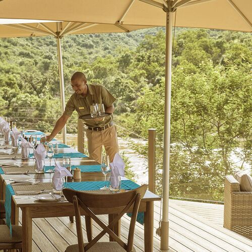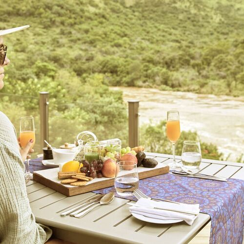 Morgenmad efter morgensafarien består af et udvalg af kontinentale retter og varme retter. Frokosten er let, og middagen omfatter afrikansk-inspirerede gourmetretter.