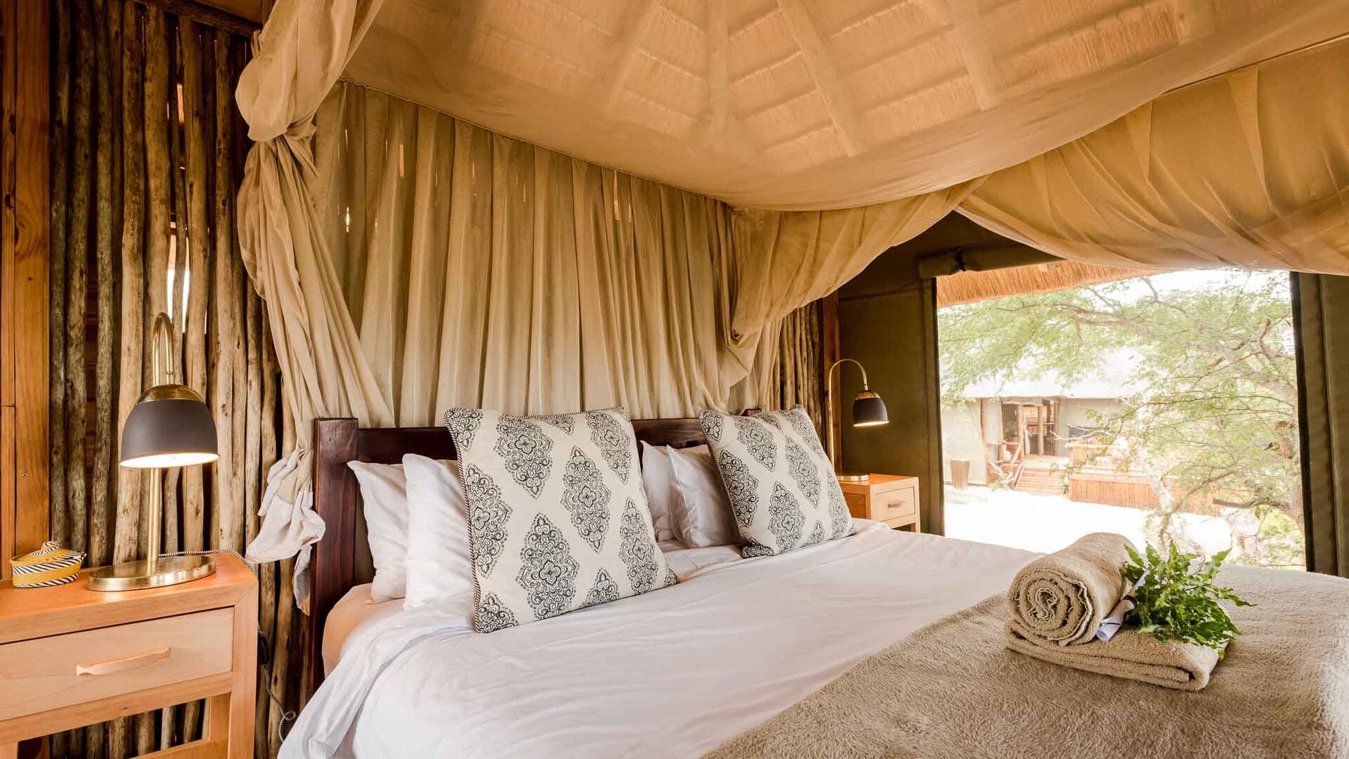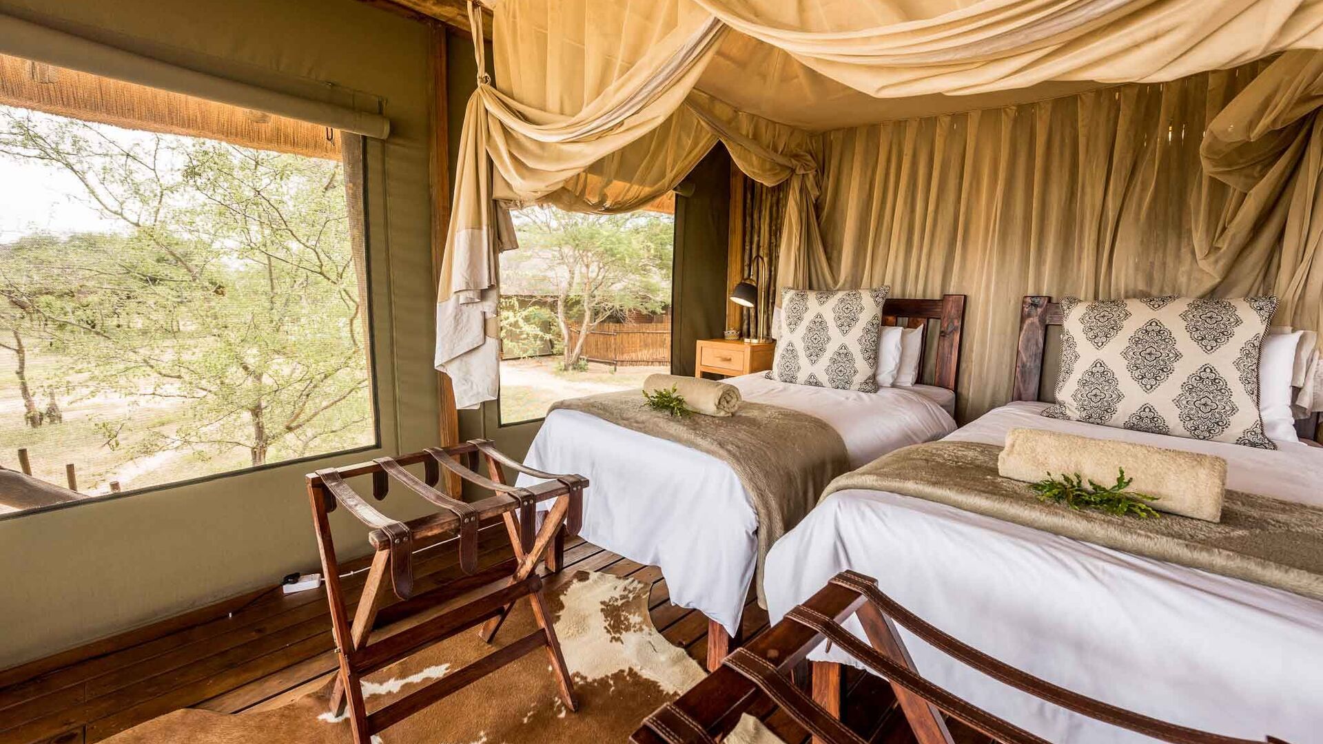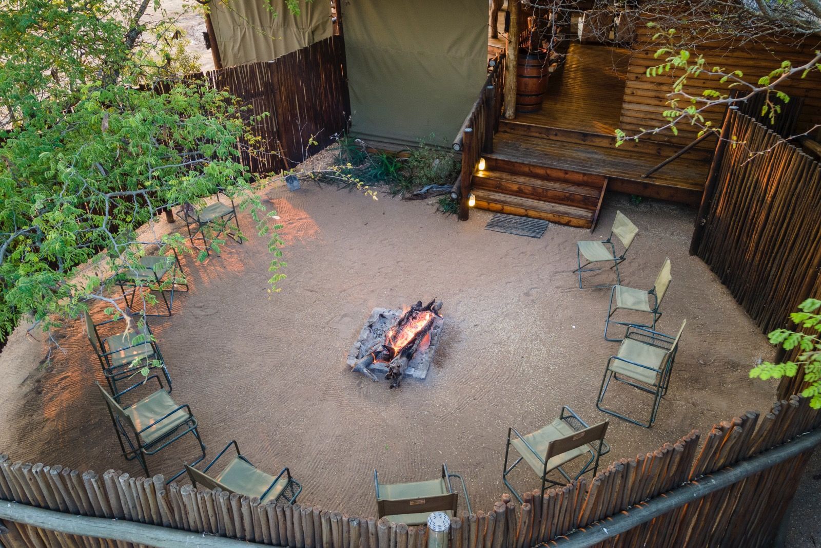 Beliggende i øjenhøjde med træerne, giver denne placering en ideel mulighed for at observere dyrelivet direkte fra verandaen. Udsigten strækker sig ud over savannen fra værelserne og fortsætter til Drakensberg-bjergene i horisonten. Da lejren ikke er indhegnet, kan dyrene ofte høres græsse i nærheden.