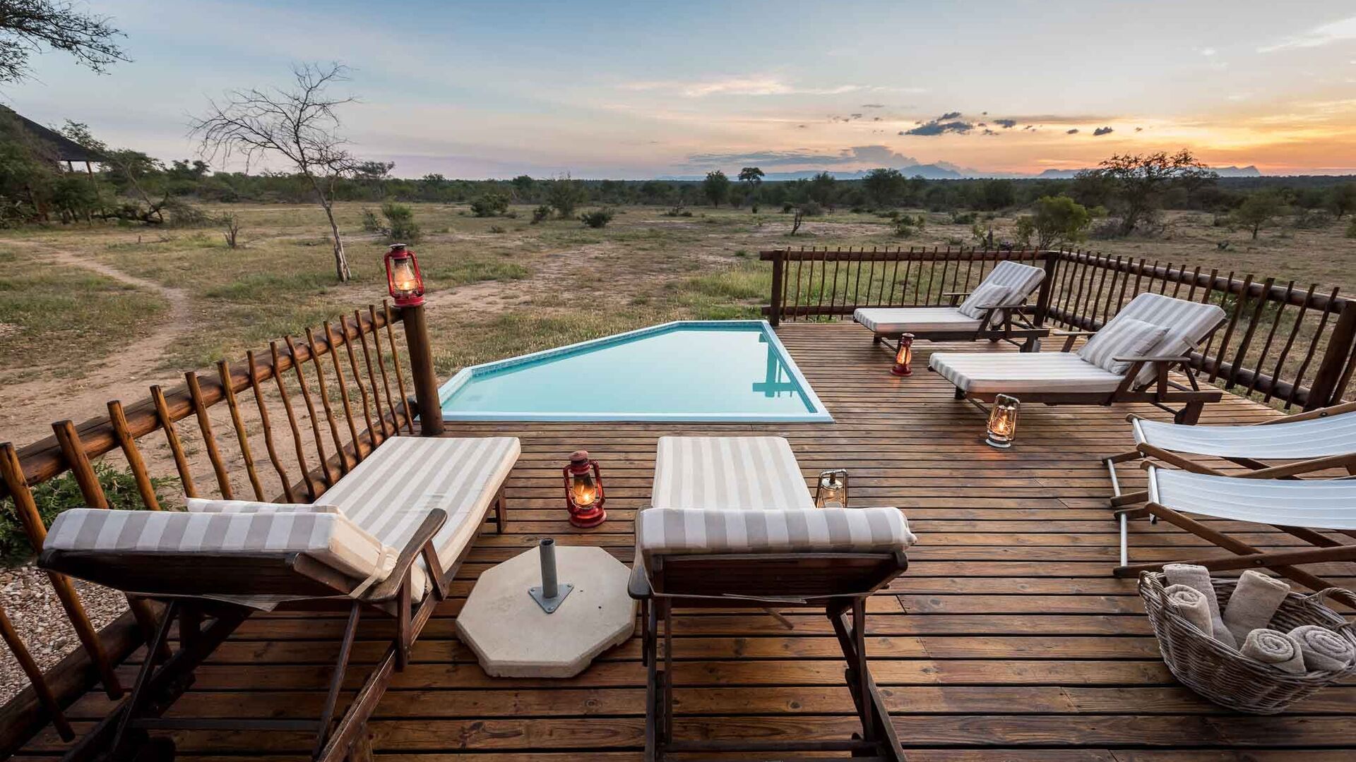 Den miljøvenlige nThambo Tree Camp er beliggende i Klaserie Private Nature Reserve, et privat Big 5-reservat, der deler uindhegnede grænser med den verdenskendte Timbavati Nature Reserve og Kruger National Park. Med kun 5 hytter tilbyder det en personlig og intim safarioplevelse.