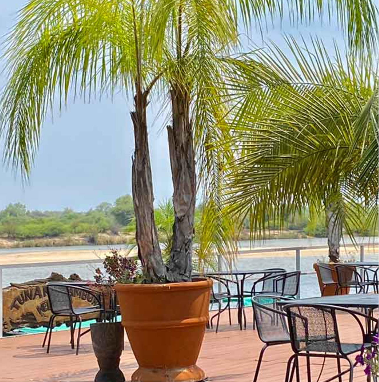 Nunda River Lodge er placeret lige på bredden til Okavango floden i Namibia nedstrøms fra Popa vandfaldet, og ganske tæt på ikke bare én men to game reservater, både Mahango og Buffalo Core.