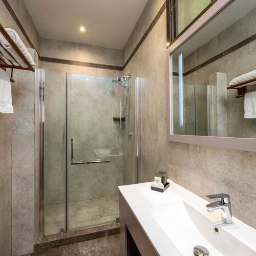 Feriestedet har en bred vifte af faciliteter, der gør opholdet behageligt og underholdende. Dette inkluderer en skøn swimmingpool og en børnepool for de yngste gæster, direkte adgang til den vidunderlige strand, en veludstyret fitnesscenter samt The Wellness Centre, hvor gæsterne kan forkæle sig selv med forskellige behandlinger, ansigtsbehandlinger, massage og specielle pakker. Der er også tre behandlingsrum og mulighed for fodmassage.