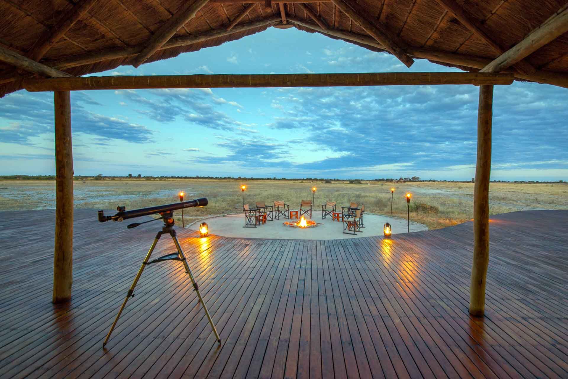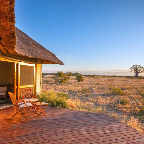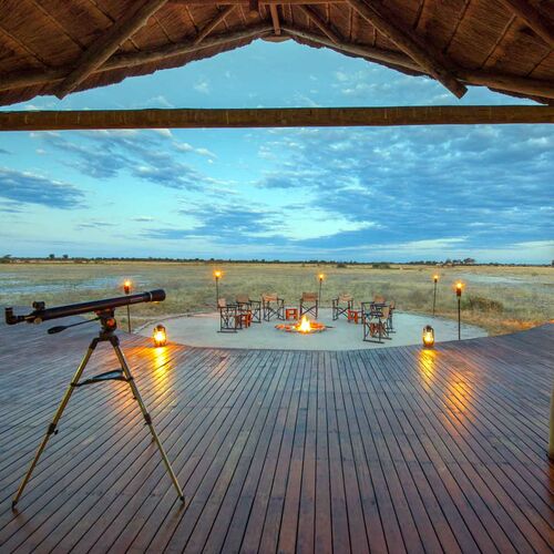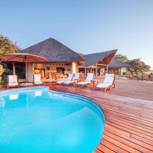 Nxai Pan Camp åbnede i 2009 og er i dag den eneste helårscamp i Nxai Pan National Park. Den ligger vendt mod øst og de åbne græsklædte sletter som i dag dækker den fossile søbund eller saltsænkning, deraf navnet, som var en del af den store forhistoriske sø som en gang dækkede det centrale Botswana.