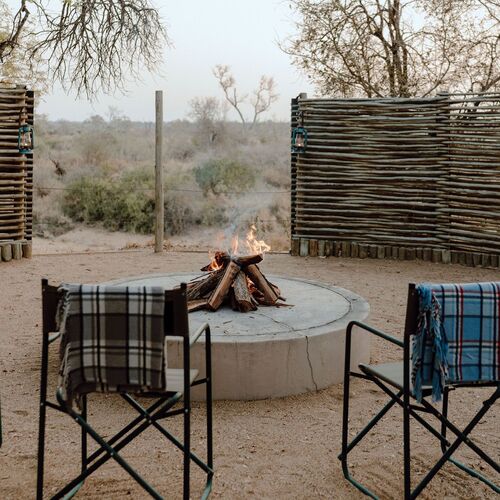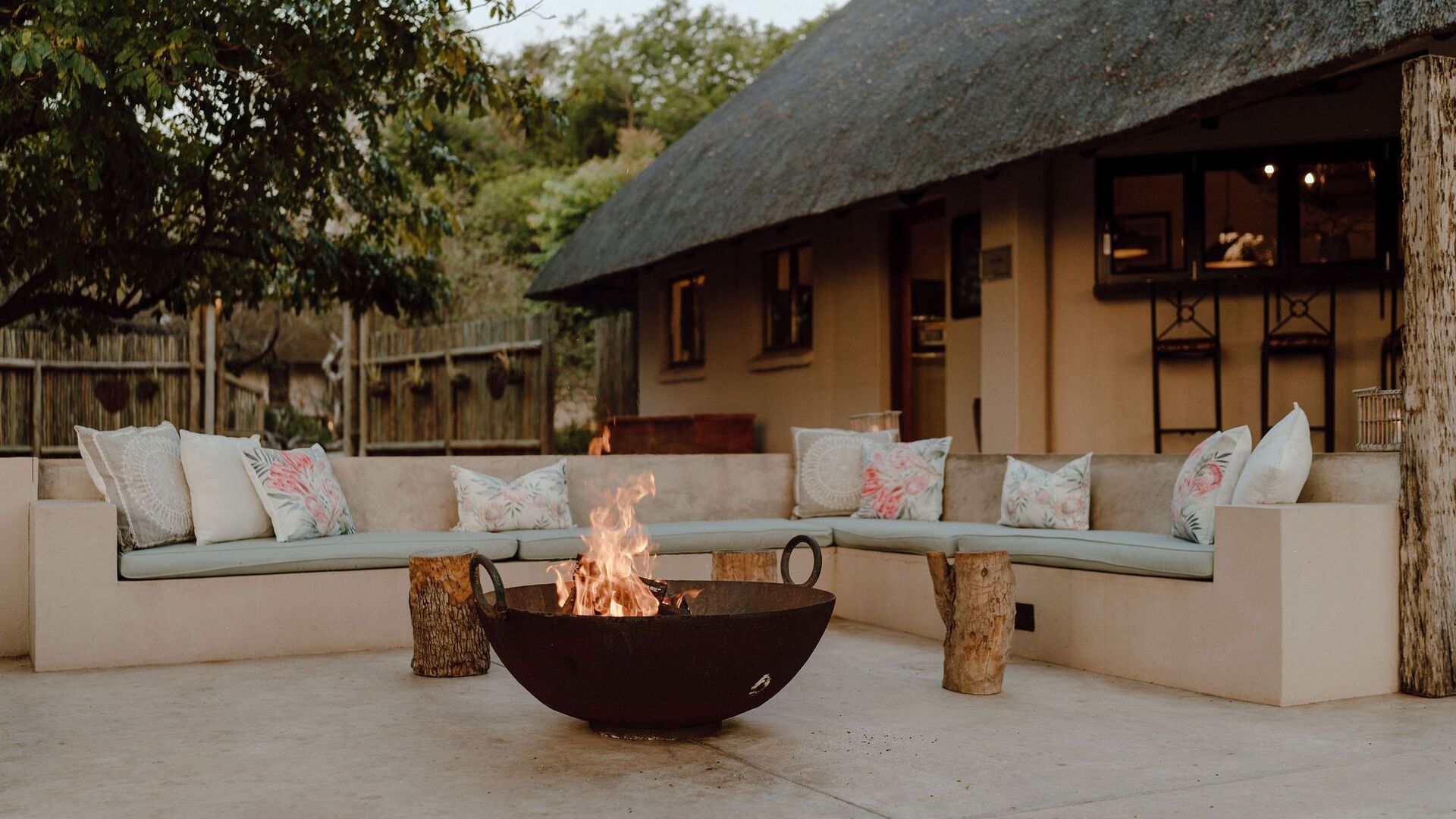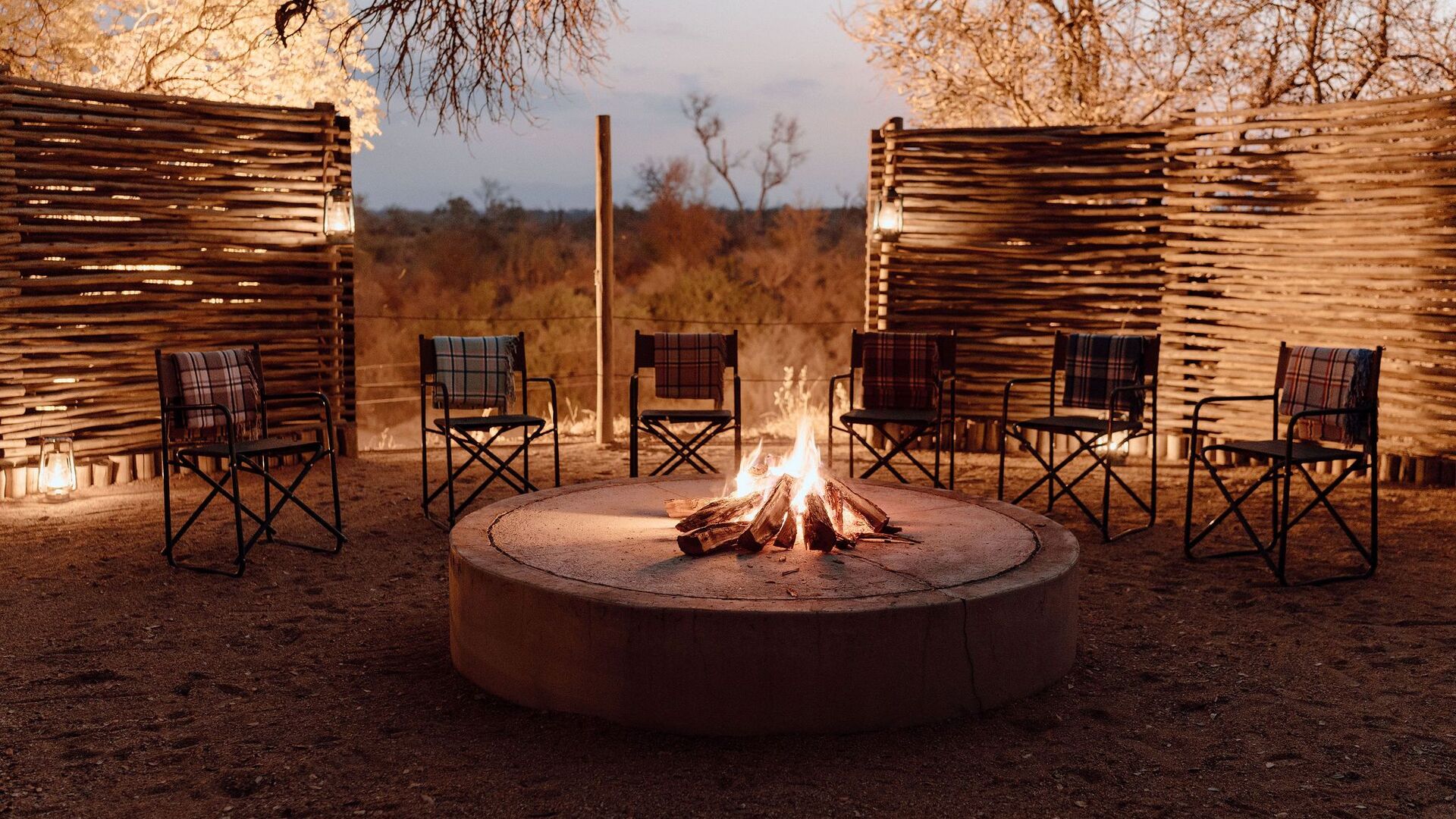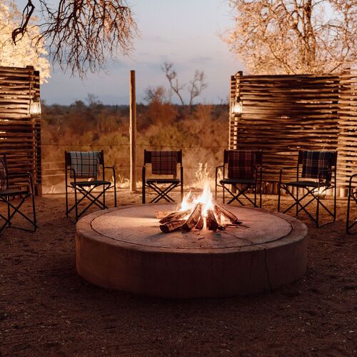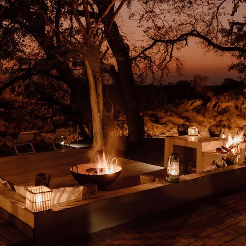 Boma-området er strategisk placeret for at udnytte udsigten til vandhullet og tilbyder det perfekte sted at sidde under stjernerne omkring et knitrende lejrbål efter din aften-safaritur.