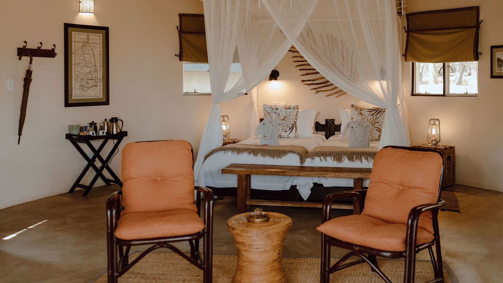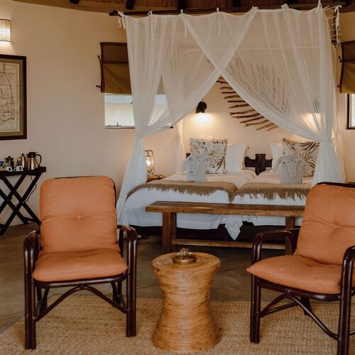 Lodgen har 5 flotte hytter, indrettet med sandfarvet interiører og jordnære toner designet til at harmonisere med Balule Bush.