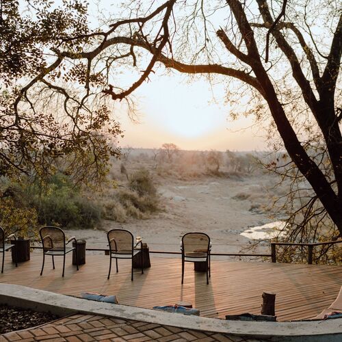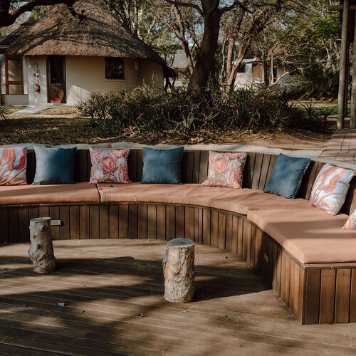 Fællesområdet har en wrap-around udsigtsplatform, der efterligner flodens kurver, og strækker sig over hele lodgens længde. Hele lodgen er i skygge af Boer-bønner og gamle Jackalberry-træer, hvilket sikrer hvile fra varmen i de sizzling sommermåneder. Og bare meter fra fællesområdet er der et livligt vandhul, hvor dyrelivet er kendt for at dukket op og give en spektakulær oplevelse for lodgens gæster.