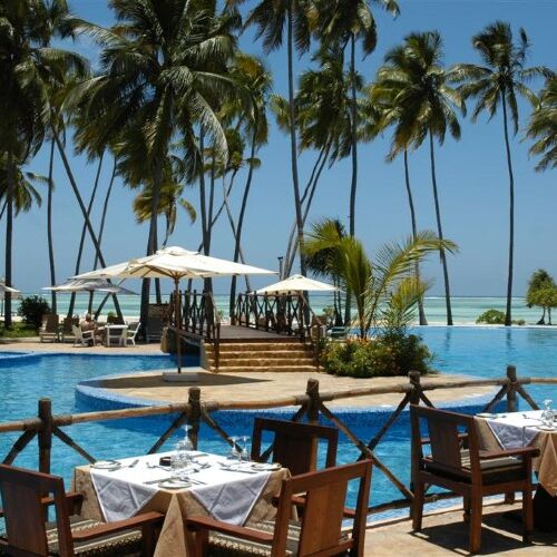 Ocean Paradise Resort er et strandhotel med en helt unik beliggenhed på en af Zanzibars smukkeste strækninger direkte ud til Det Indiske Ocean og med Zanzibars største swimmingpool. Hotellet ligger på Zanzibars smukke nordøstkyst i et 6,5 ha stort tropisk haveparkanlæg med direkte adgang til stedets sandstand.