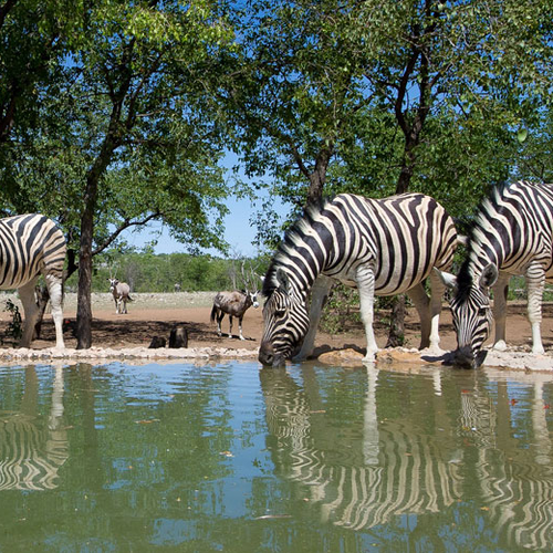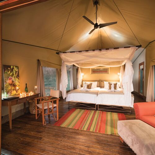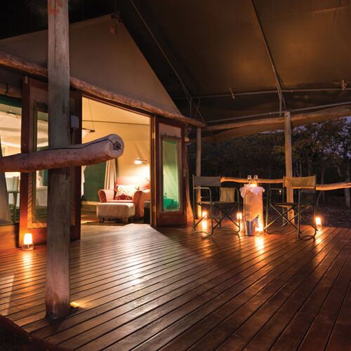 Blot otte telte der i lighed med fællesområdet af lodgen vender mod et permanent vandhul, hvor et yderst rigt dyreliv kommer for at drikke i de tørre og varme måneder.