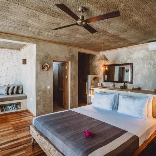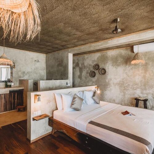 Direkte adgang til både infinity-pool og havet, de 26-35 kvm værelser med havudsigt er udstyret med en komfortabel kingsize-seng til to voksne og en-suite badeværelse.