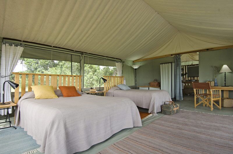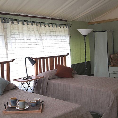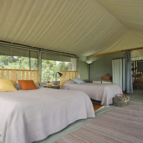 Porini Lion Camp rummer i alt kun 10 telte - der alle er af høj kvalitet, rummelige og smagfuldt indrettet. Alle telte har eget ensuite badeværelse og privat veranda.
