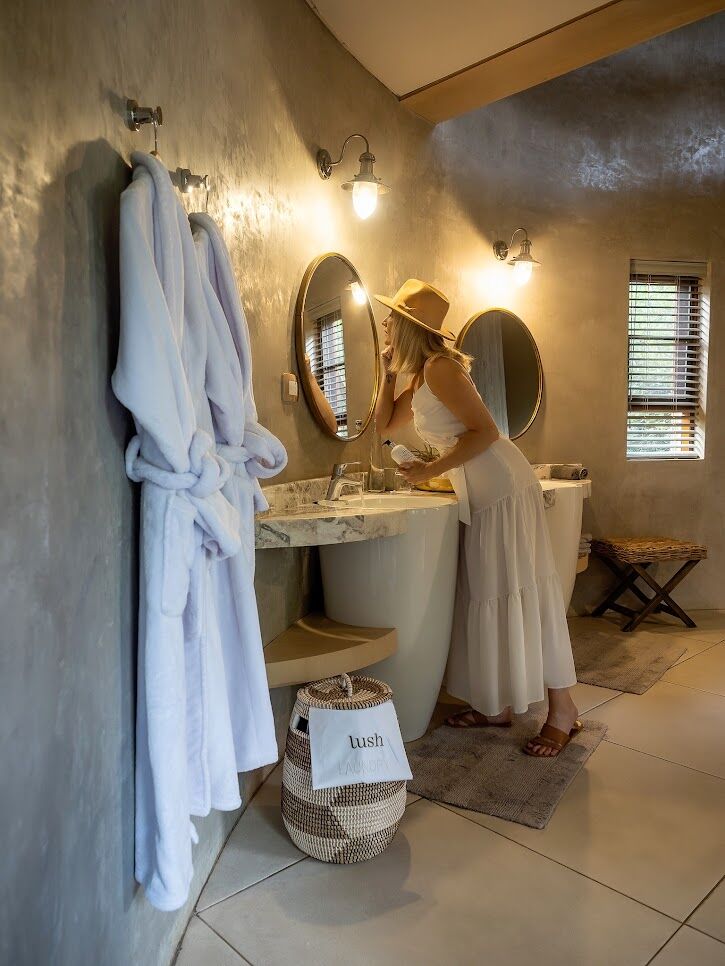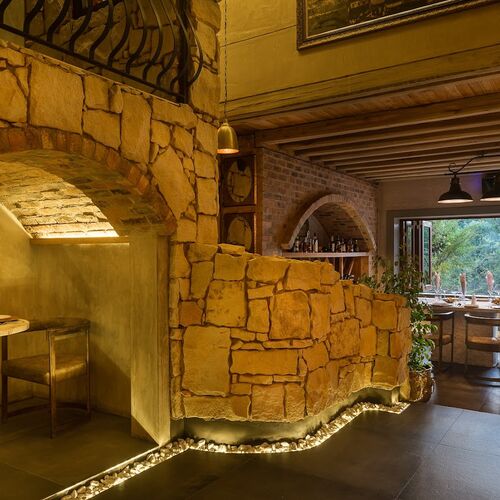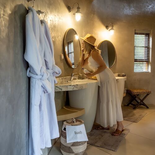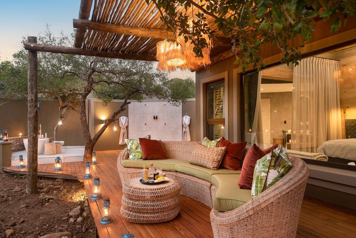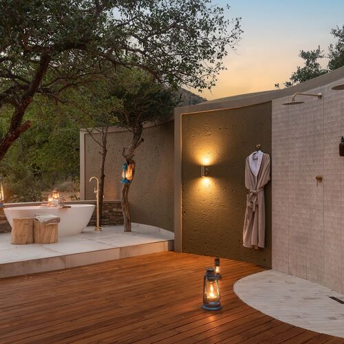 Hovedbygningen omfatter bar, spise/lounge-område, udendørs lounge samt terrasse med spiseborde og udsigt samt vinkælder. Desuden er der en såkaldt afrikansk boma. Bomaer blev oprindelig brugt for at beskytte husholdningens egne dyr mod vilde dyr, men navnet benyttes i dag for et udendørs spiseområde med en grill og et åbent ildsted. Der er desuden mulighed for mange forskellige wellness behandlinger (mod betaling).