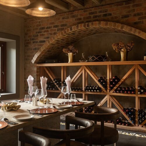 Aftensmaden serveres skiftevis i boma´en, vinkælderen, i spisestuen og på terrassen – i spisestuen og på terrassen er det en 3-retters menu – i boma´en og vinkælderen er det normalt buffet. Privat dining på værelset kan også nemt arrangeres.
