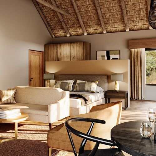 Letamo Lodge er beliggende i Qwabi Private Game Reserve (malariafrit område) og er ideel til både par og familier. Hints af moderne interiørdesign fra midten af århundredet smelter sammen med afrikanske mønstre og artefakter for et levende look, der bevarer en rolig atmosfære. I denne utæmmede vildmark, der strækker sig over 11.000 hektar, vil du blive mødt med levende gæstfrihed, en passion for bevarelse af naturen og dyrene i området.