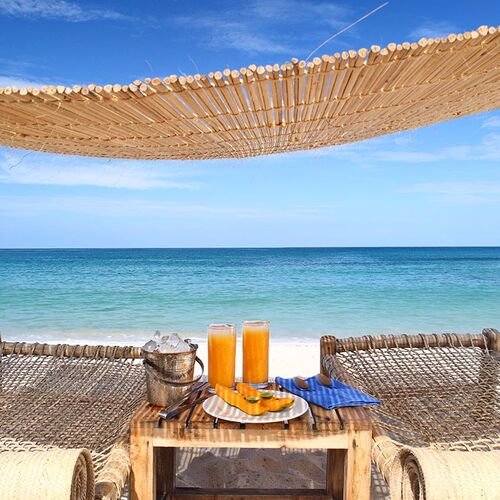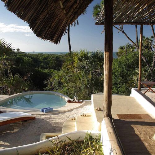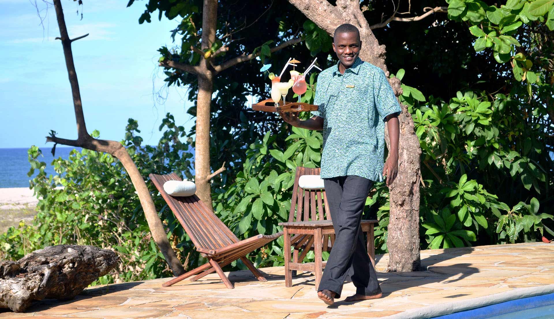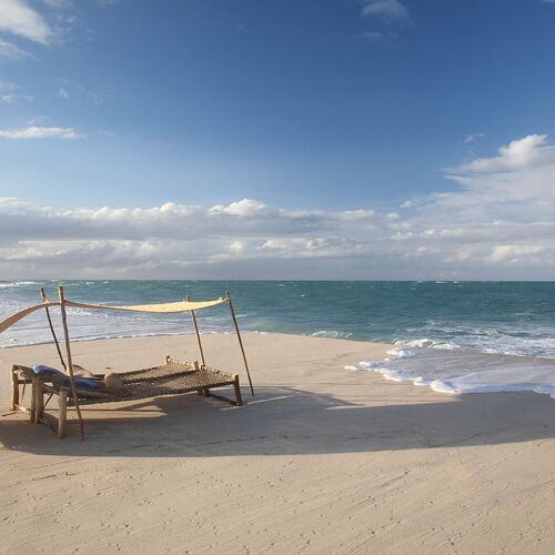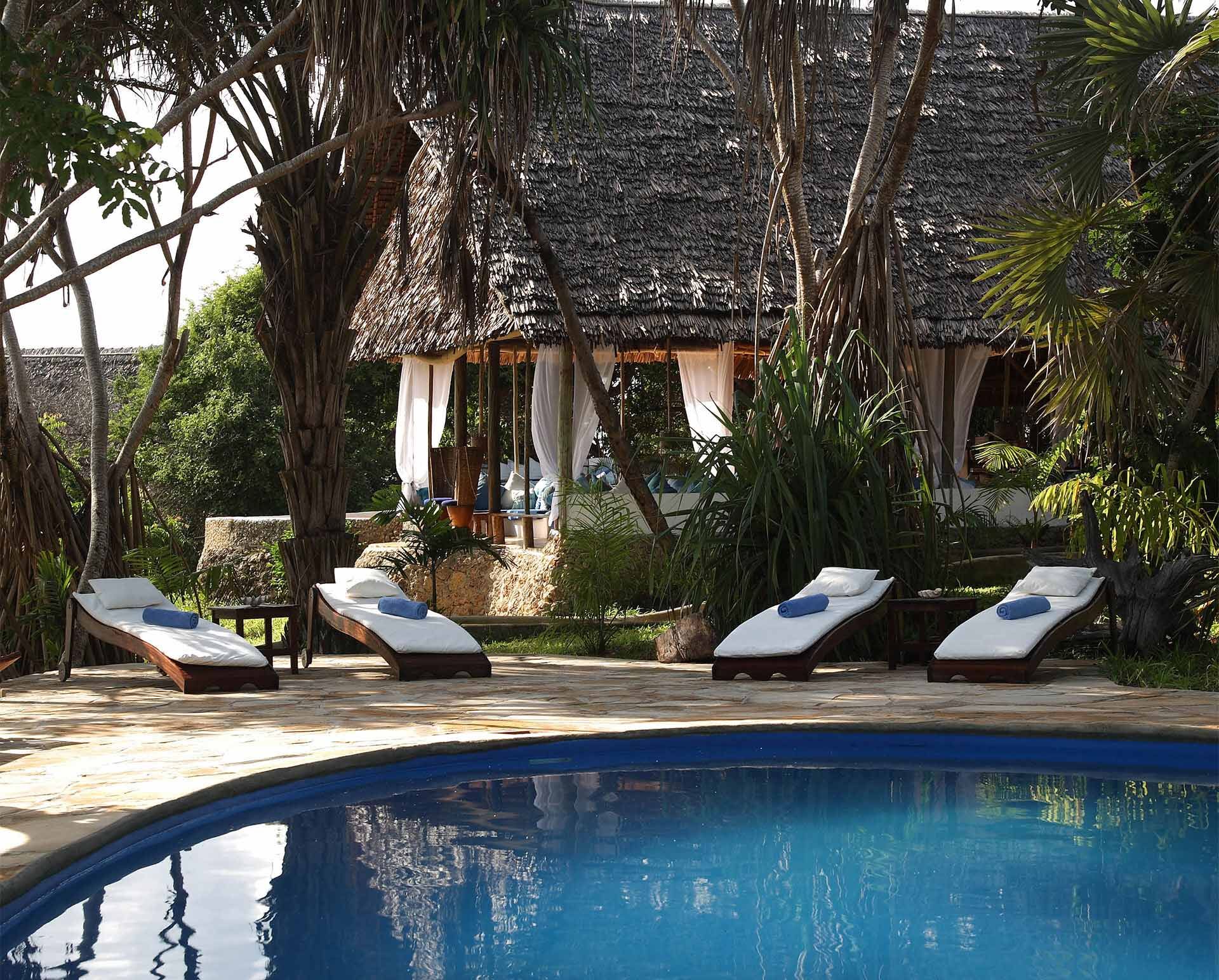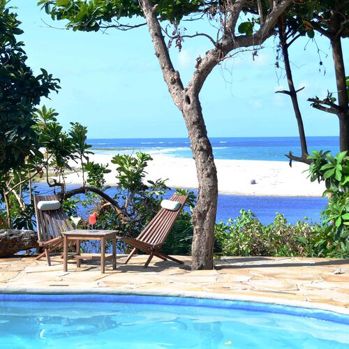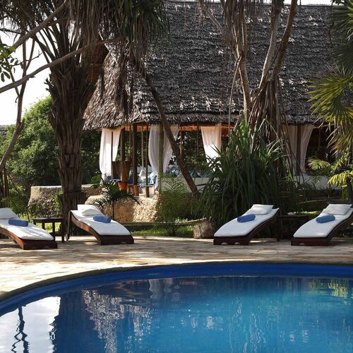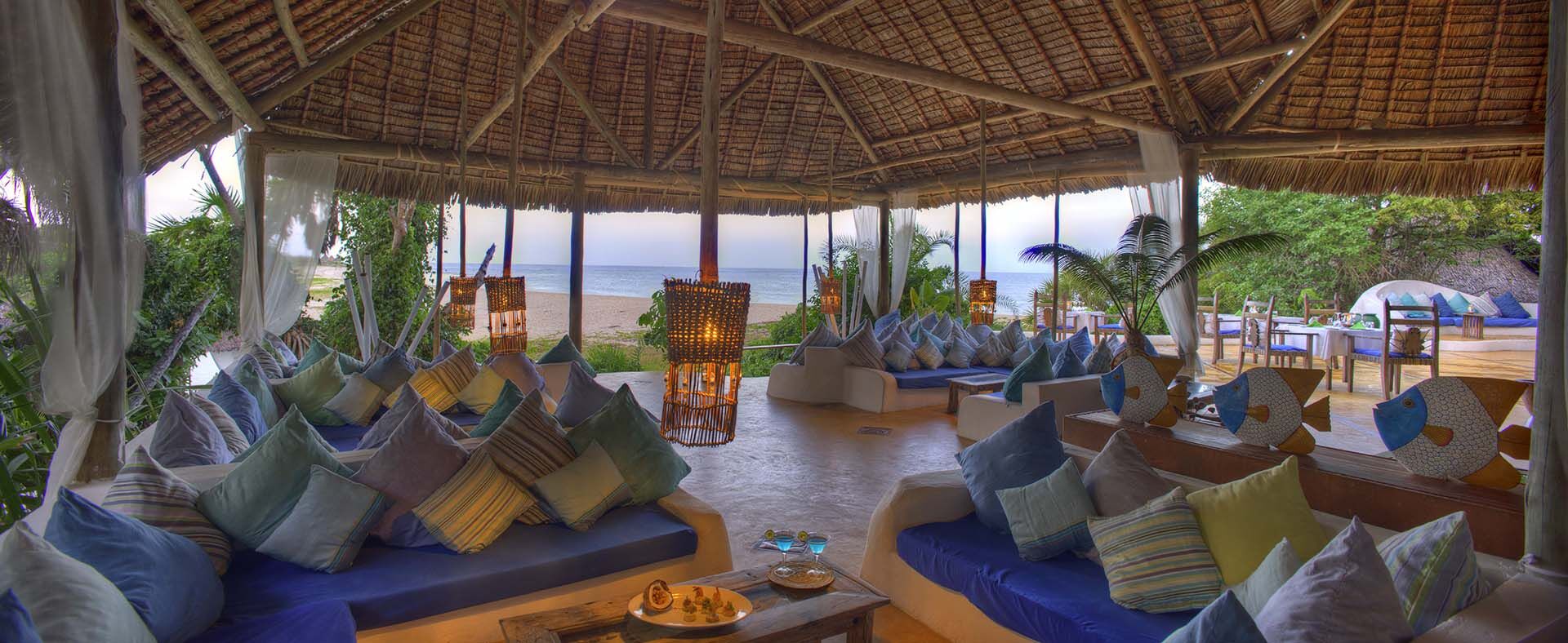 Der er tolv rummelige, charmerende hytter og fire suiter, alle bygget i naturlige, lokale materialer som harmonerer perfekt med de vidunderlige omgivelser. Etniske møbler og tekstiler giver en god fornemmelse af det multi-kulturelle Tanzania. Hver hytte har naturligvis eget badeværelse og en stor veranda med skøn udsigt over det azurblå oecan og lagunen.