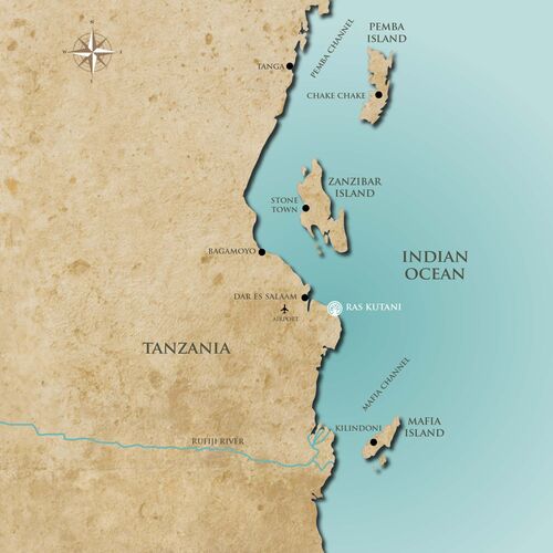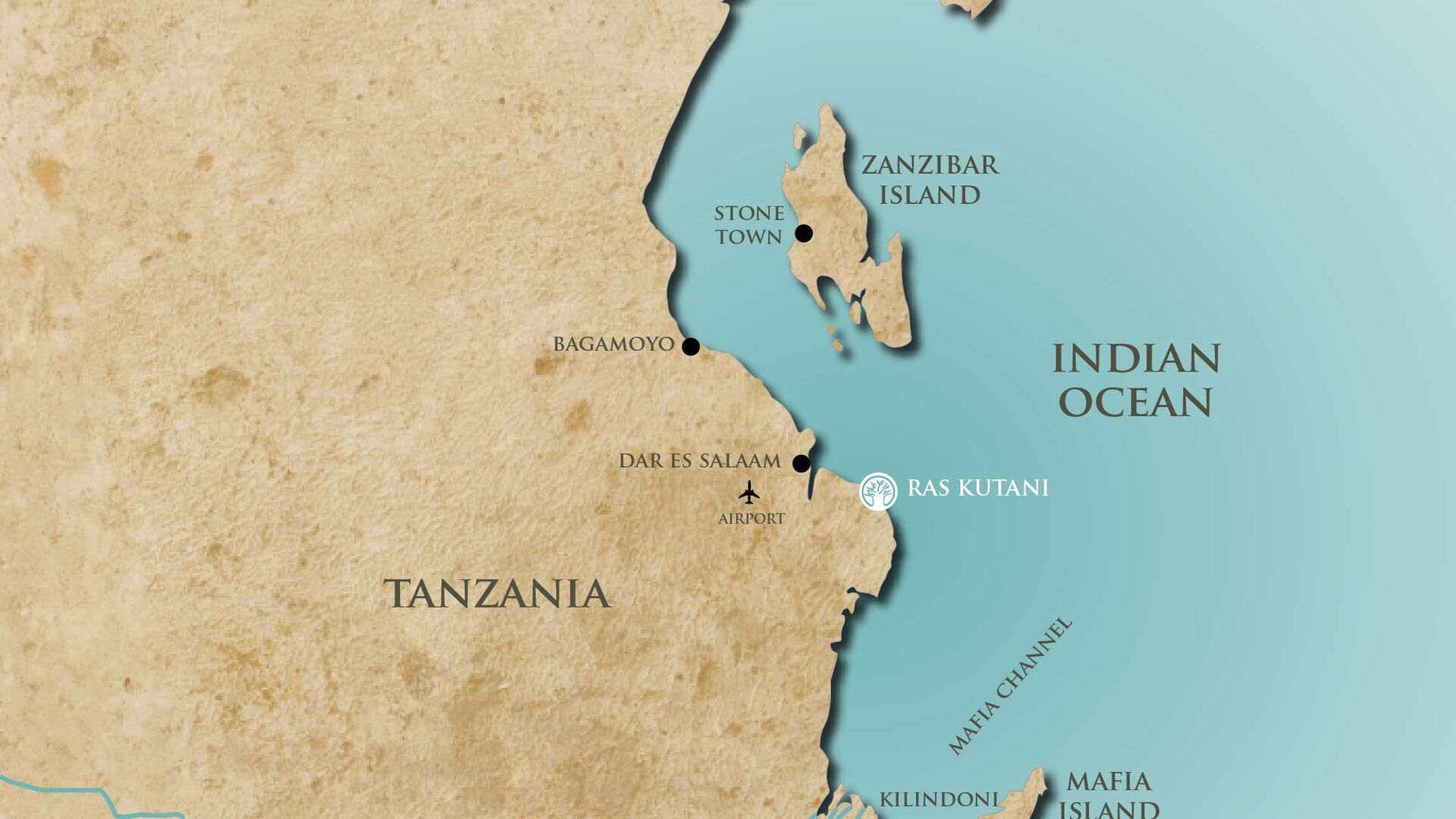 Selvom Ras Kutani blot er beliggende 35 km fra Dar Es Salaam, er det et perfekt sted for en romantisk ferie. Stedets placering gør, at man nærmest føler sig på ens egen tropiske ø. Lodgen flankeres af en ferskvandslagune, som støder op til en uberørt skov.