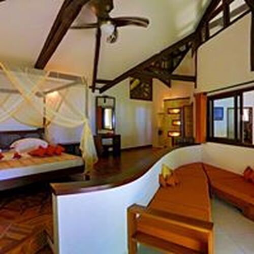 Der er en fantastisk smuk pool i asymmetrisk design og krystal blåt vand ligesom det omkringliggende hav. De stråtækte hytter og værelserne er indrettet i smuk Madagaskar stil og farvevalget er roligt og smagfuldt. Værelserne er ikke designet i traditionelt firkantet design, men er ligesom poolen i asymmetriske former som giver en rolig og dejlig fornemmelse.