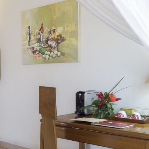 I Deluxe værelset er der udover et soveværelse, også en stue og der er velkomst kaffe eller te ved ankomst. værelset er større og mere rumligt end de andre værelser. På værelset, der ligesom de andre værelser er møbleret i Madagaskar træ, er der de samme faciliteter, dog er der et større TV og kaffe/te faciltierne er skiftet ud med en espressomaskine.