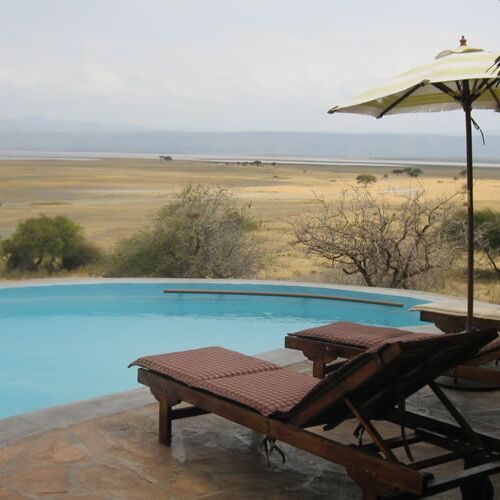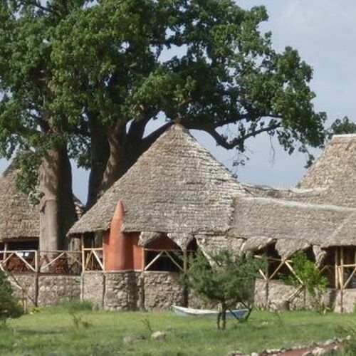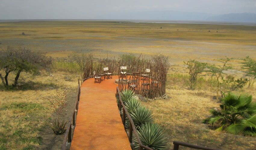 Lodgen ligger på et højdedrag skjult af buskadset med en strålende udsigt over Lake Manyara. Lodgen opbygning er inspireret af masailandsbyens cirkelrunde plan. Hovedhytterne med fællesområder og udsigt til søen, er derfor placeret omkring et gammelt baobabtræ i bedste masaistil.